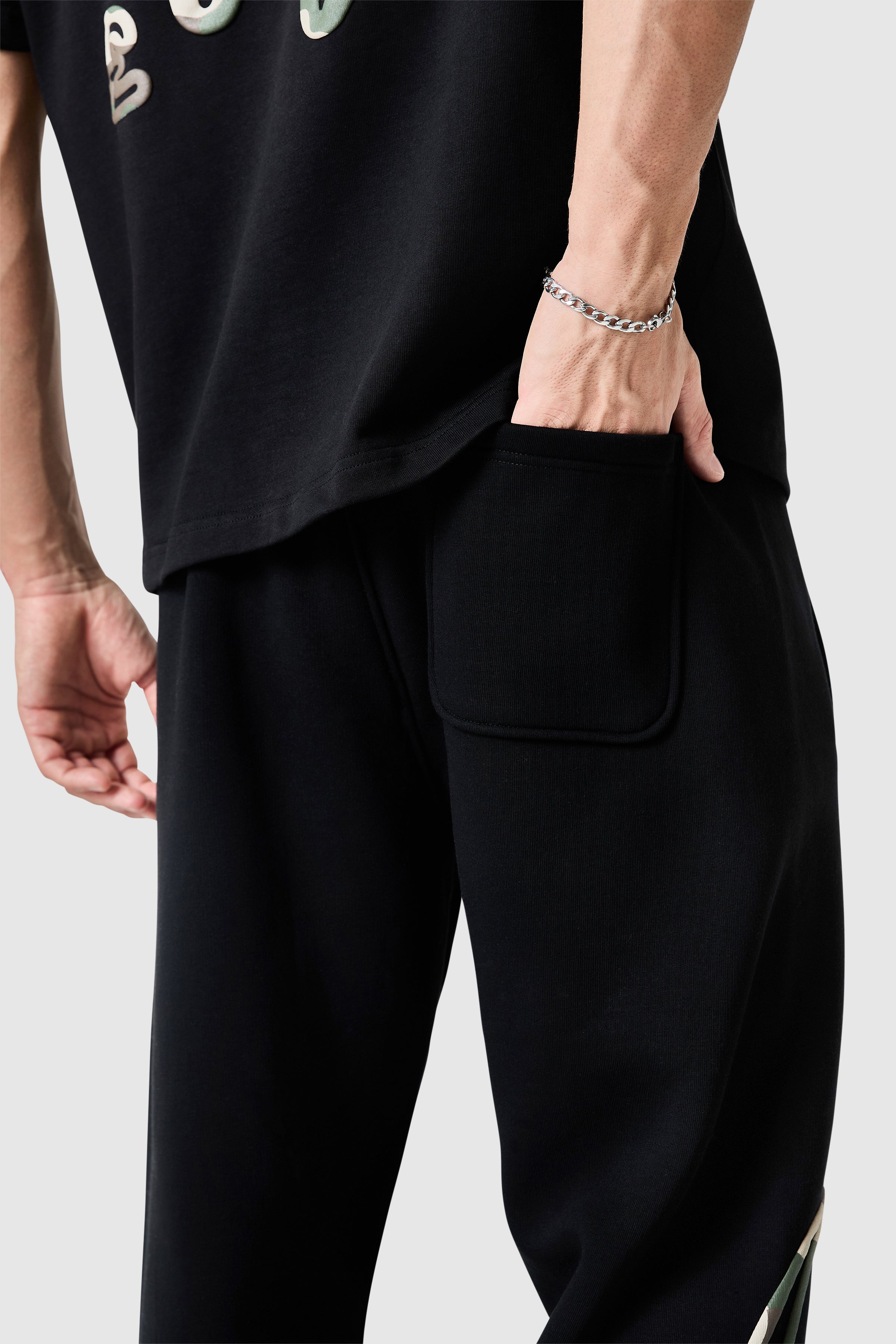 A relaxed straight leg silhouette designed for everyday comfort. The Camo Dream Acdmy Jogger features side pockets and graphic print detailing, bringing a bold statement identity while still sitting clean and wearable. Style back with the Camo Dream Acdmy Tee and Hood for a complete head-to-toe look.