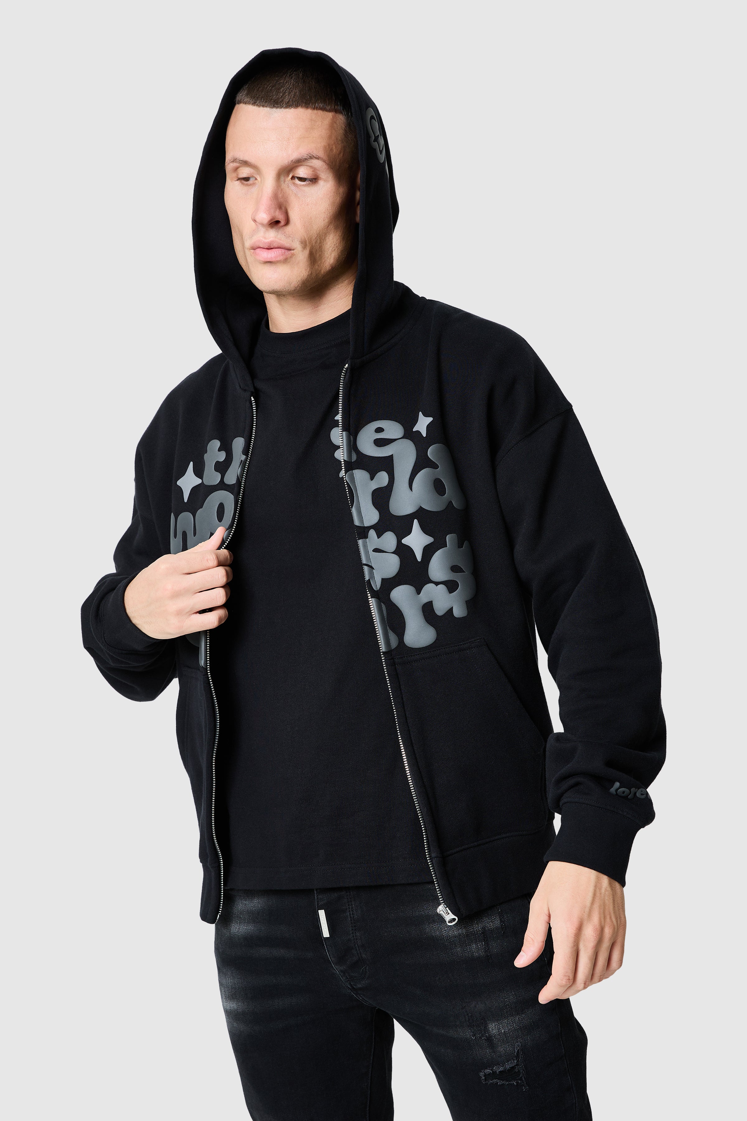 Designed with a relaxed, drop-shoulder fit, the World Is Yours FZ Hood 2.0 offers ultimate comfort with a cotton and polyester blend. Featuring a bold puff print and ribbed cuffs and hem, it pairs perfectly with the matching fleece jogger for a complete look.