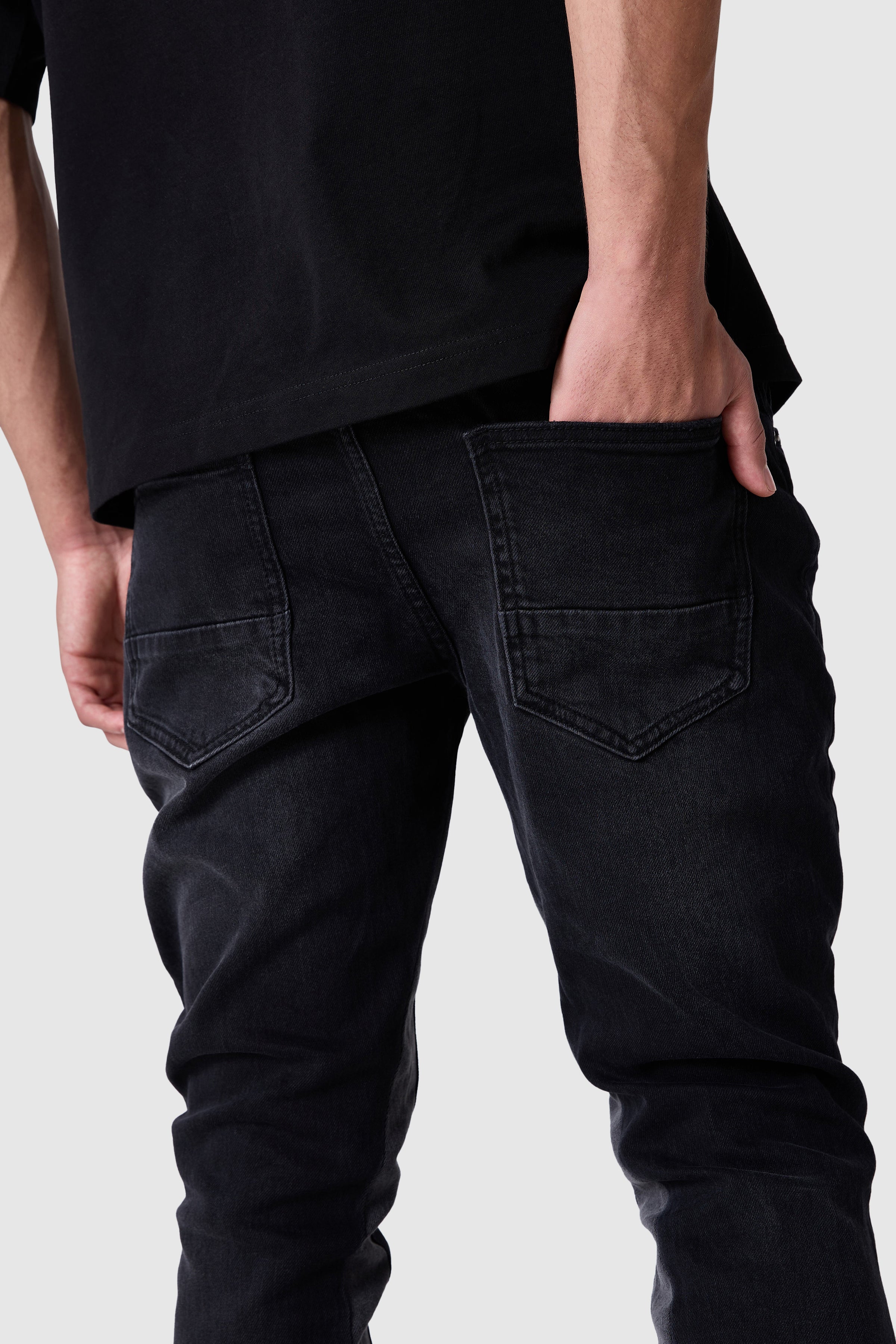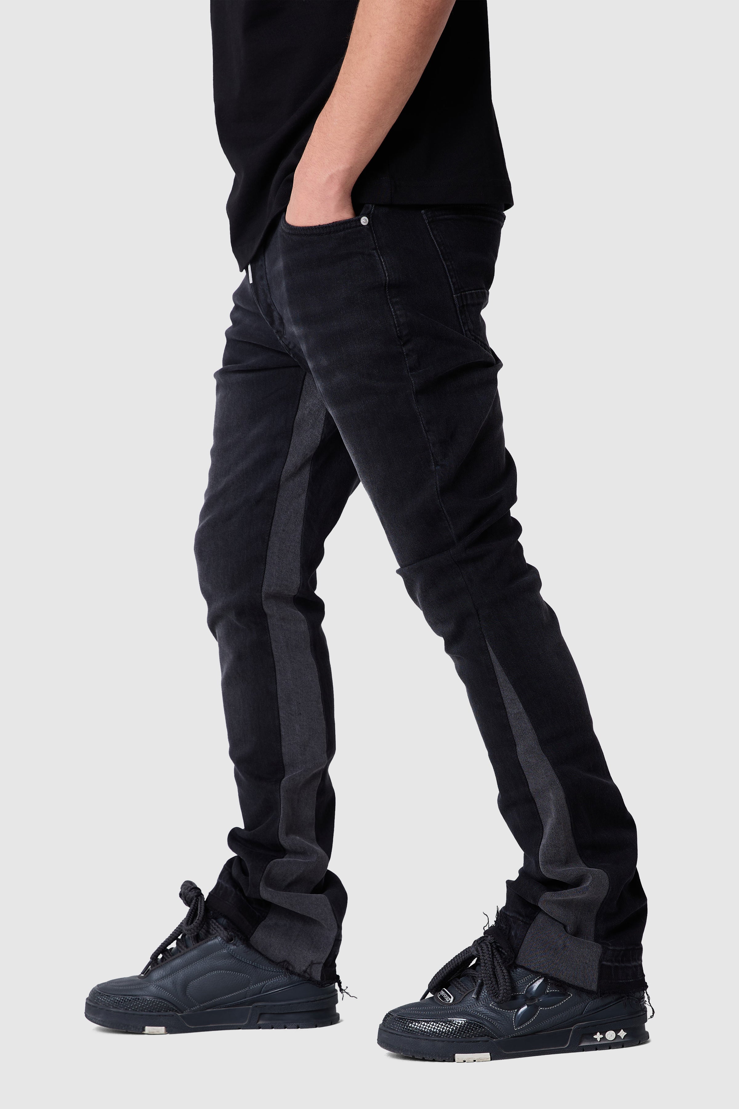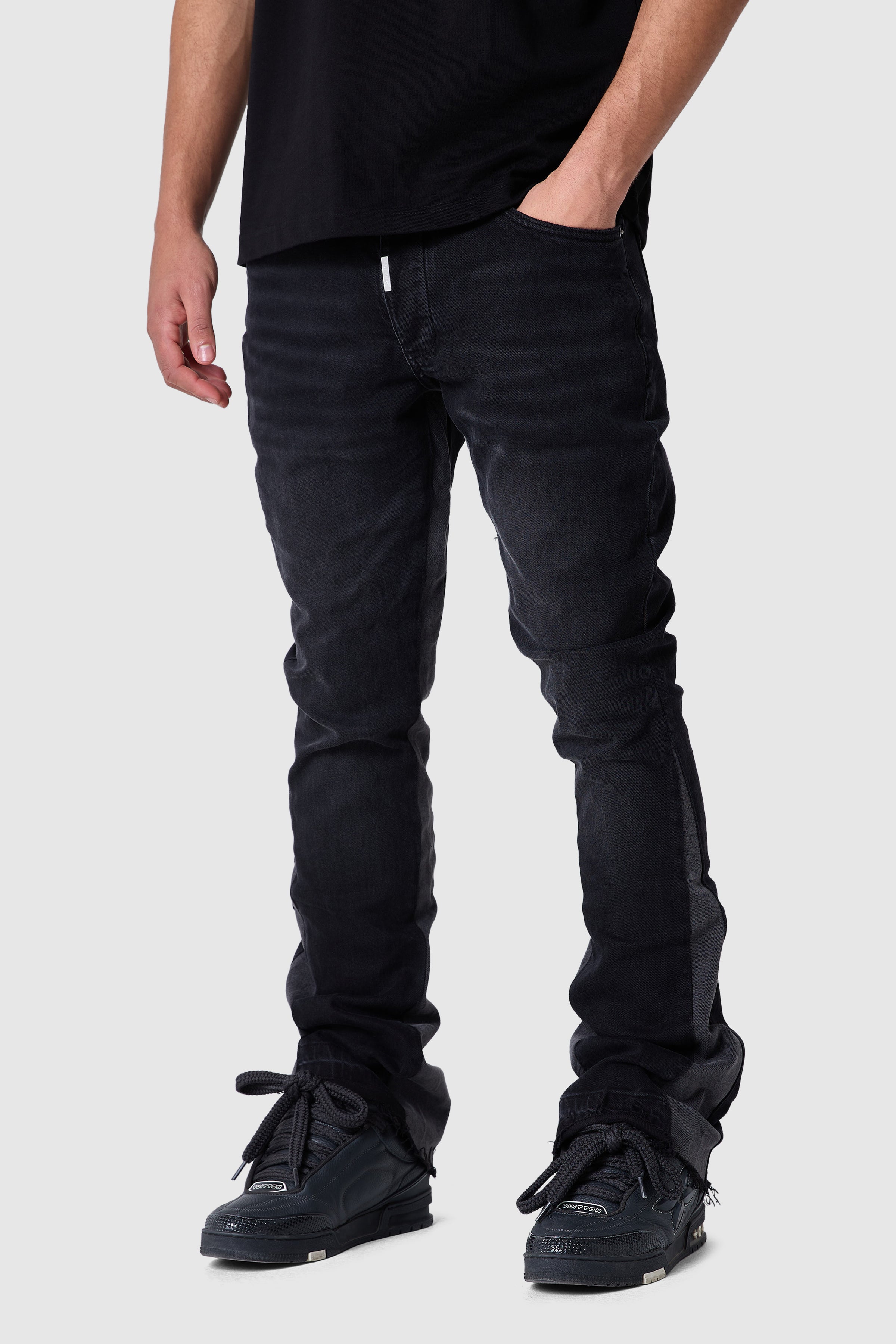 A sleek silhouette with a modern flare. The Carlo Jean features a slim fit through the hip and thigh with a wider leg, crafted from premium stretch denim for comfort and movement.