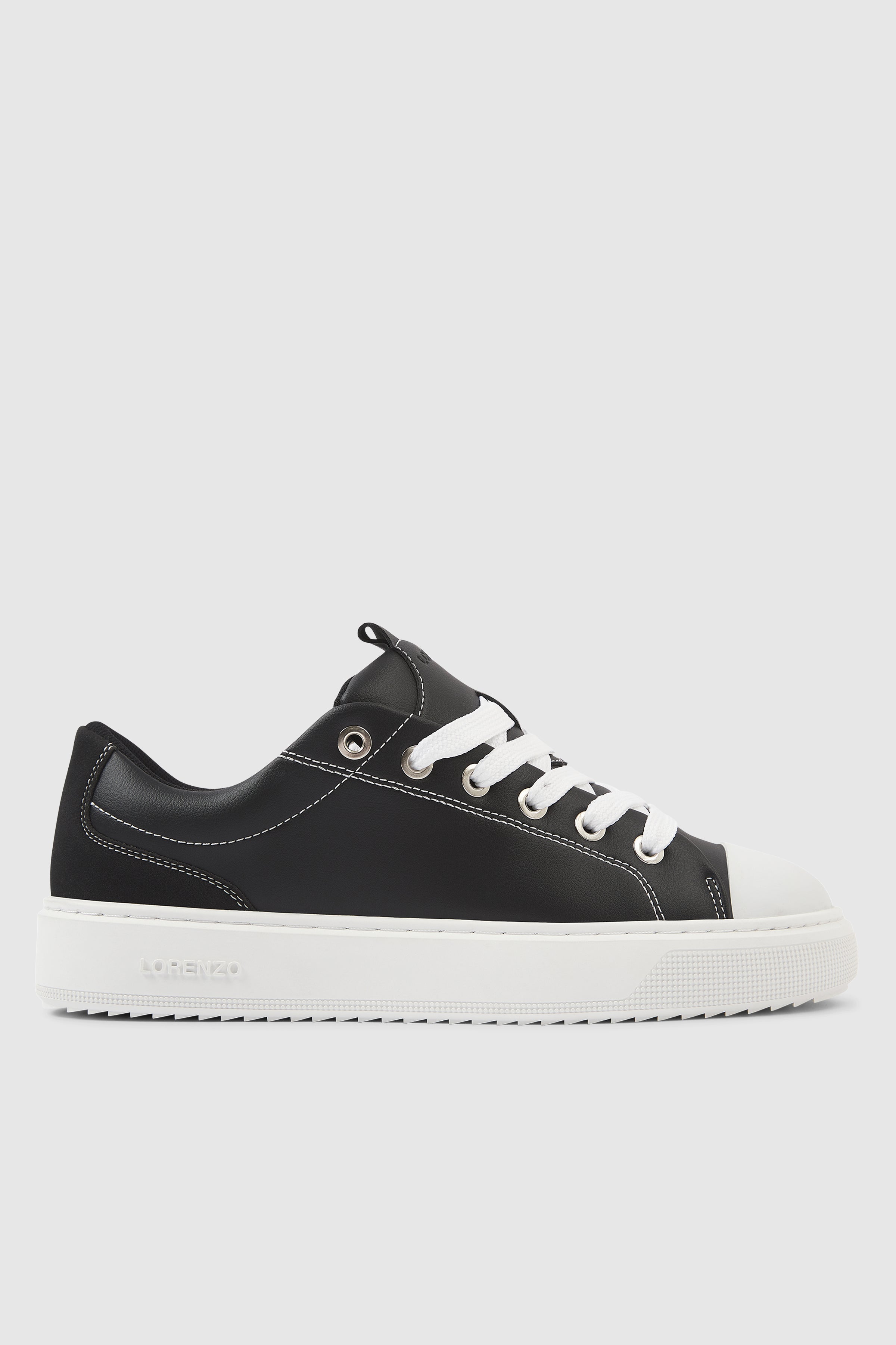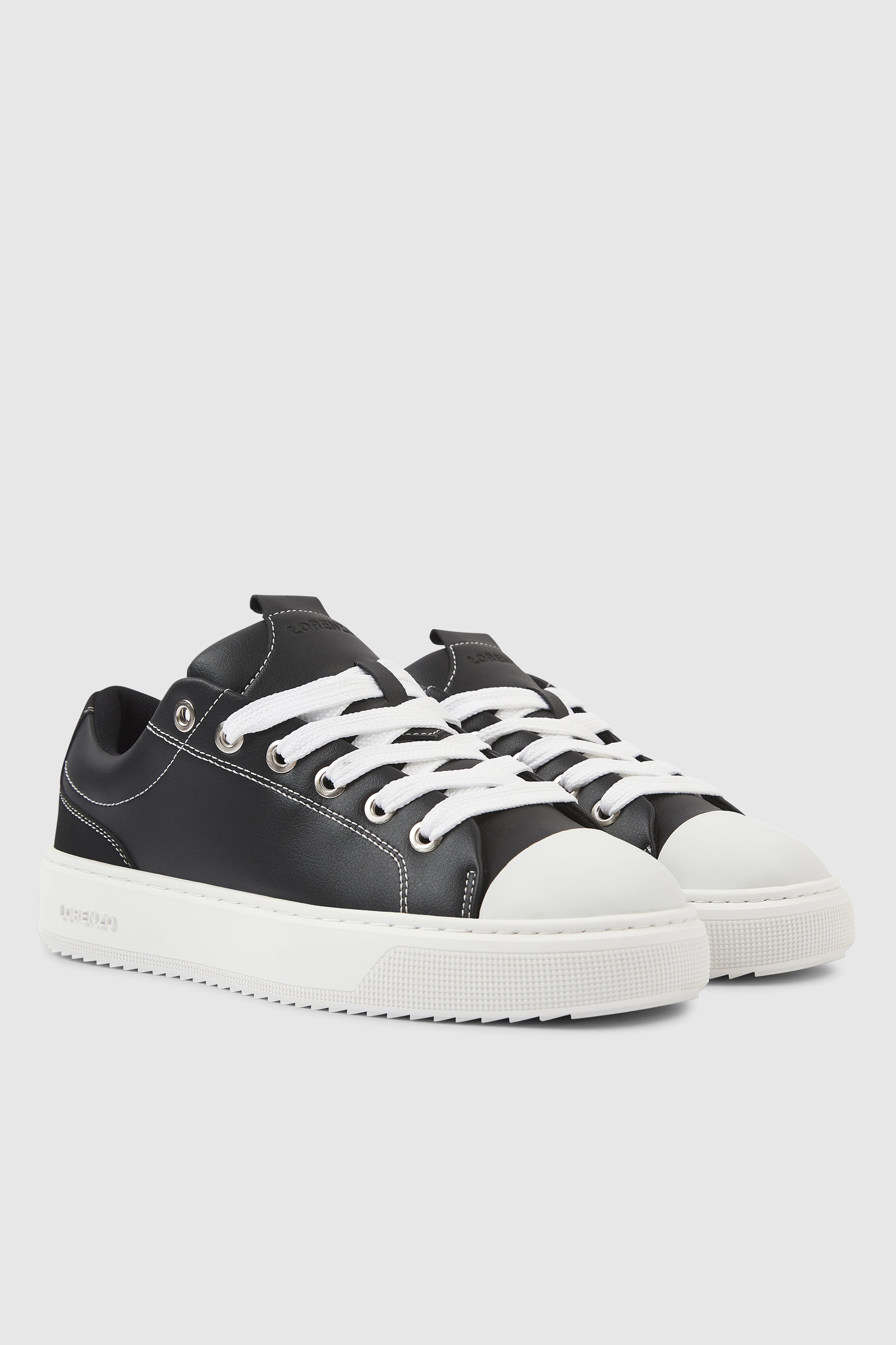 A clean, minimalist trainer with a sharp, structured profile. The Roma Trainer in Black is crafted from smooth faux leather, delivering a refined finish with everyday durability. Subtle panel lines and contrast detailing enhance the streamlined silhouette, giving the style a modern, understated look.