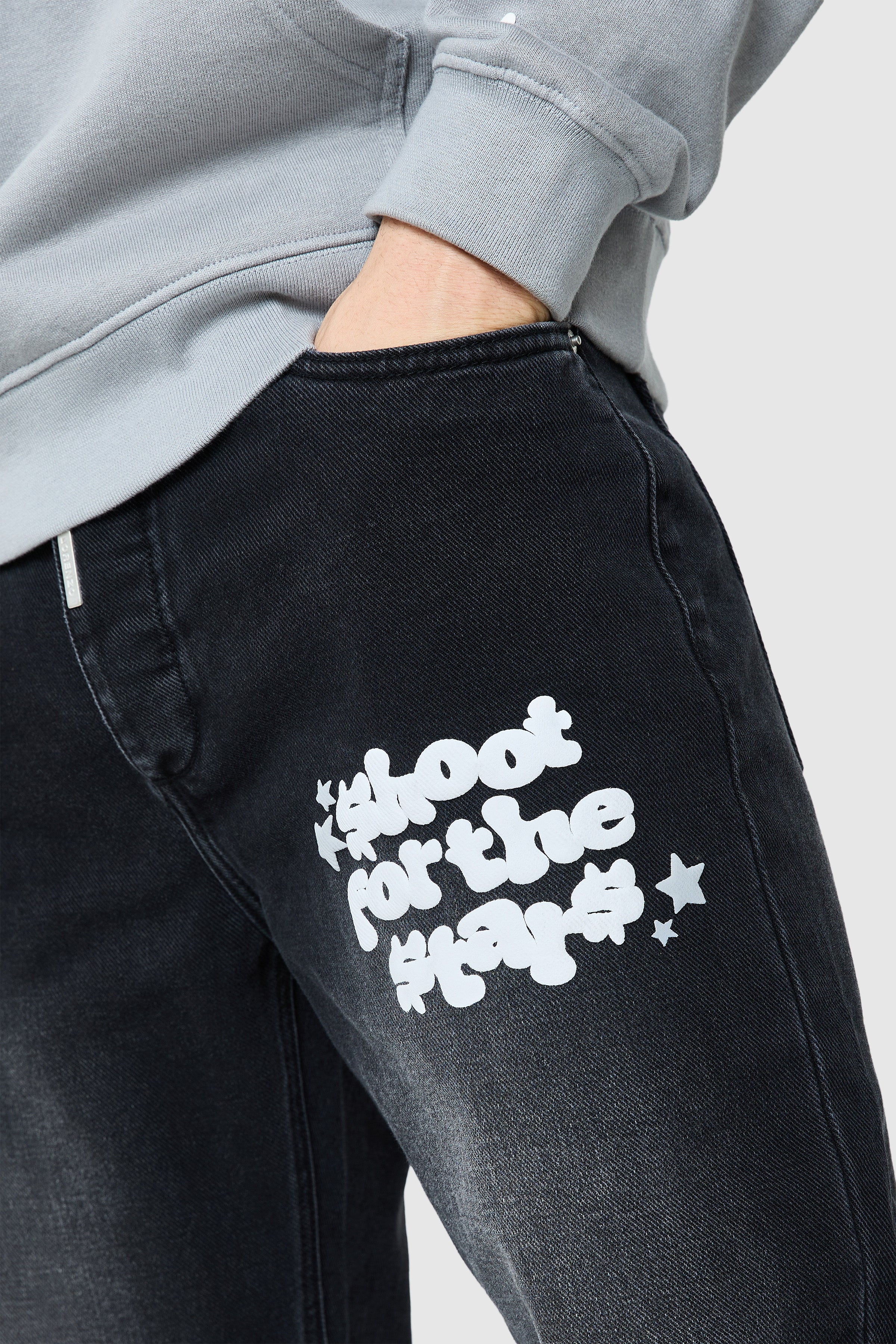 A statement jean with everyday wearability. The Shoot For The Stars Jean features a wide, straight leg fit crafted from premium stretch fabric for structure and ease.
