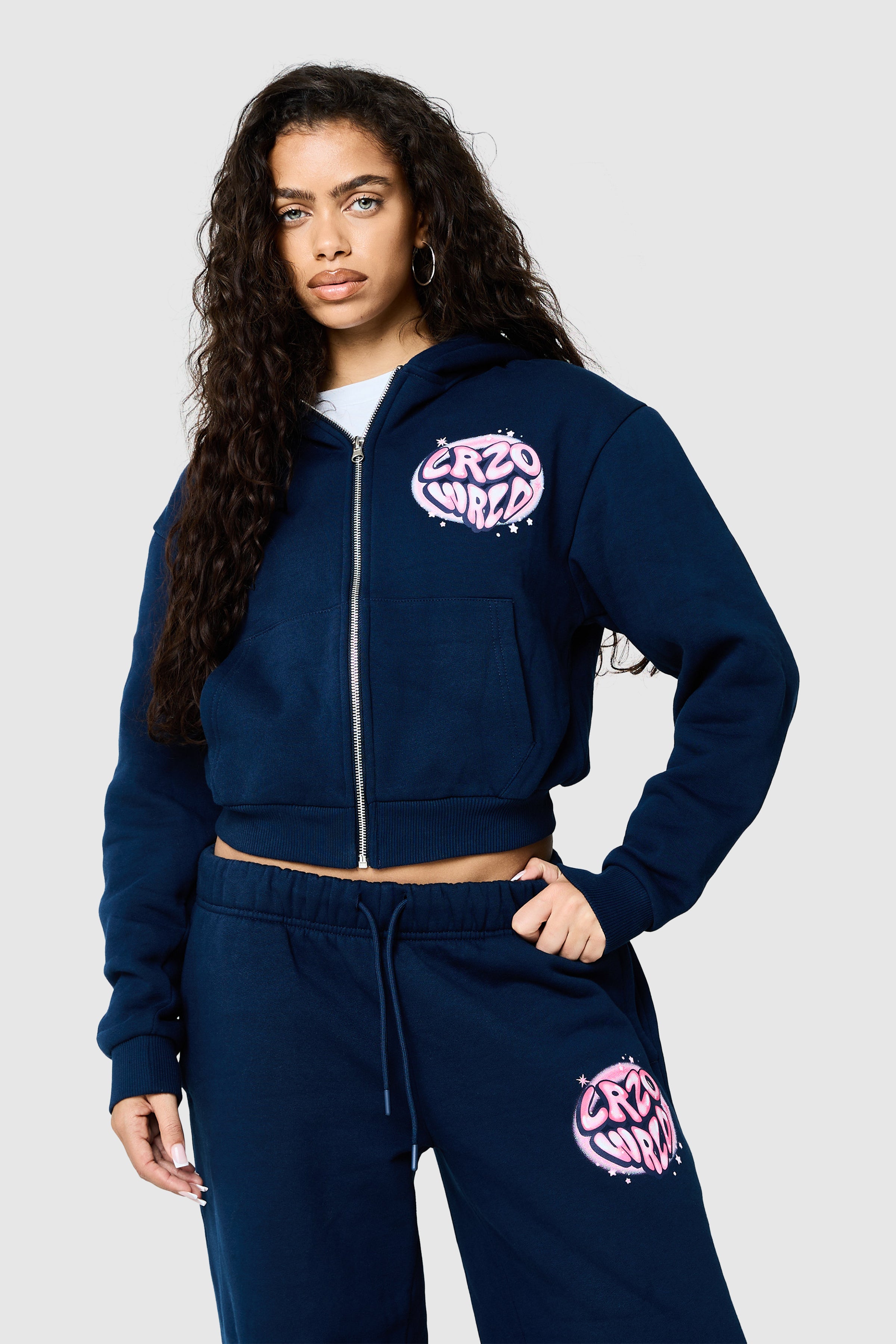 A modern zip-through hoodie designed for everyday wear. The Nova Hood in Ebony Blue is crafted from a heavyweight brushback sweat base for a structured, comfortable feel. Finished with brushed silver metal zip hardware, a pear-shaped zip puller, and statement graphics on the front and back, it delivers a refined take on a streetwear essential.
