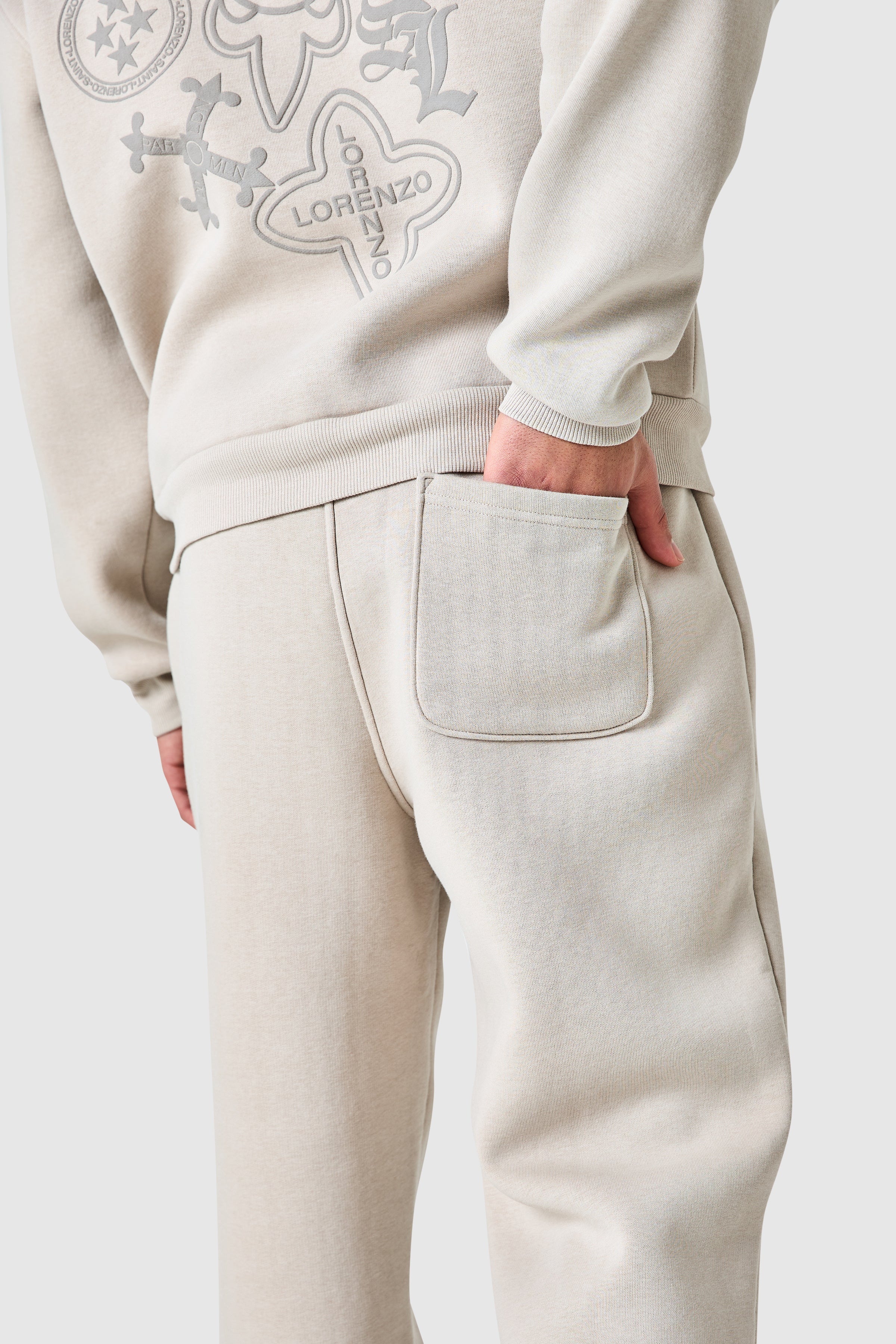 A heavyweight hoodie and statement jogger designed for comfort and bold style. The Icon Core Tracksuit in Pebblestone is crafted from 80% cotton for a structured yet soft feel, featuring ribbed cuffs and a relaxed fit.