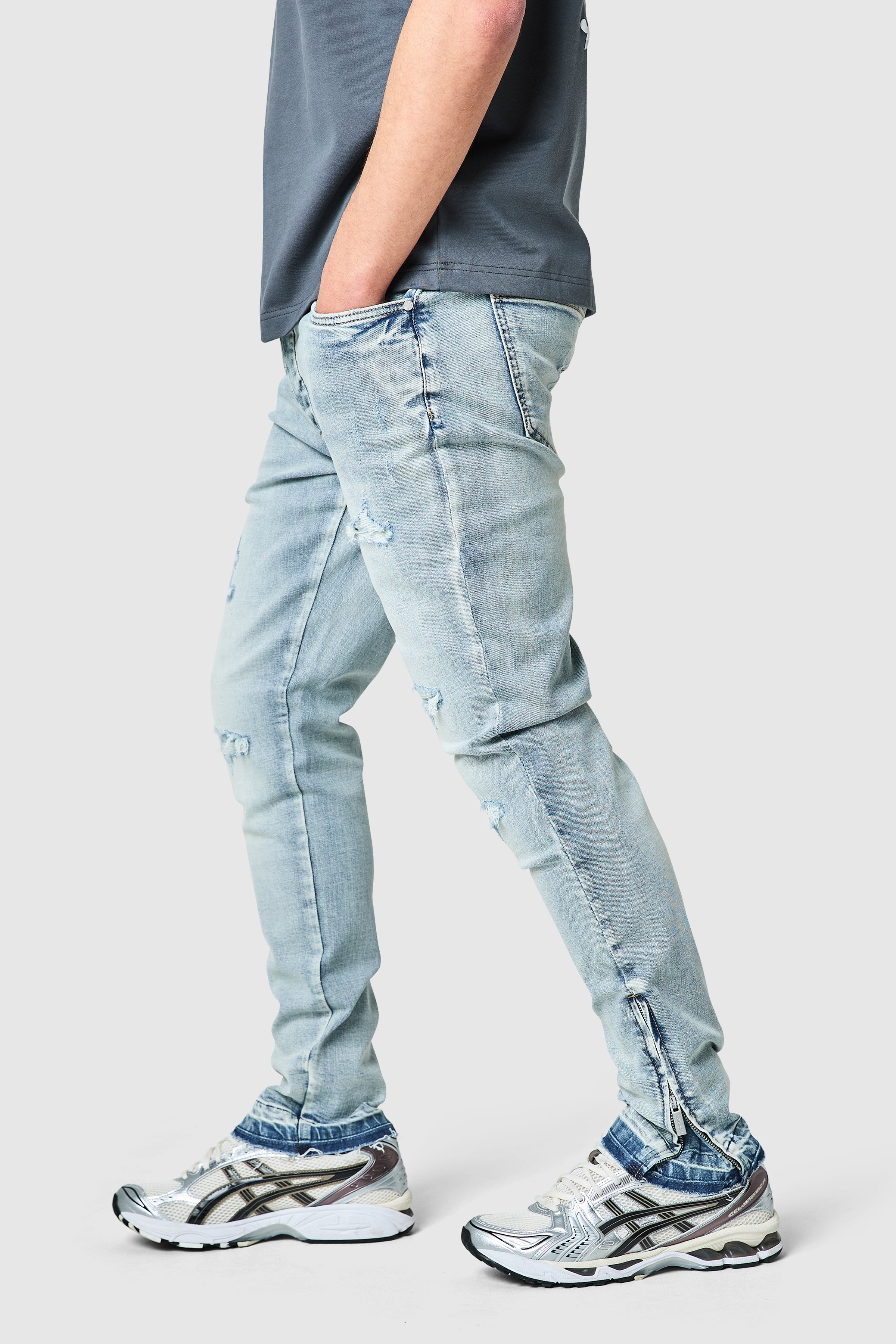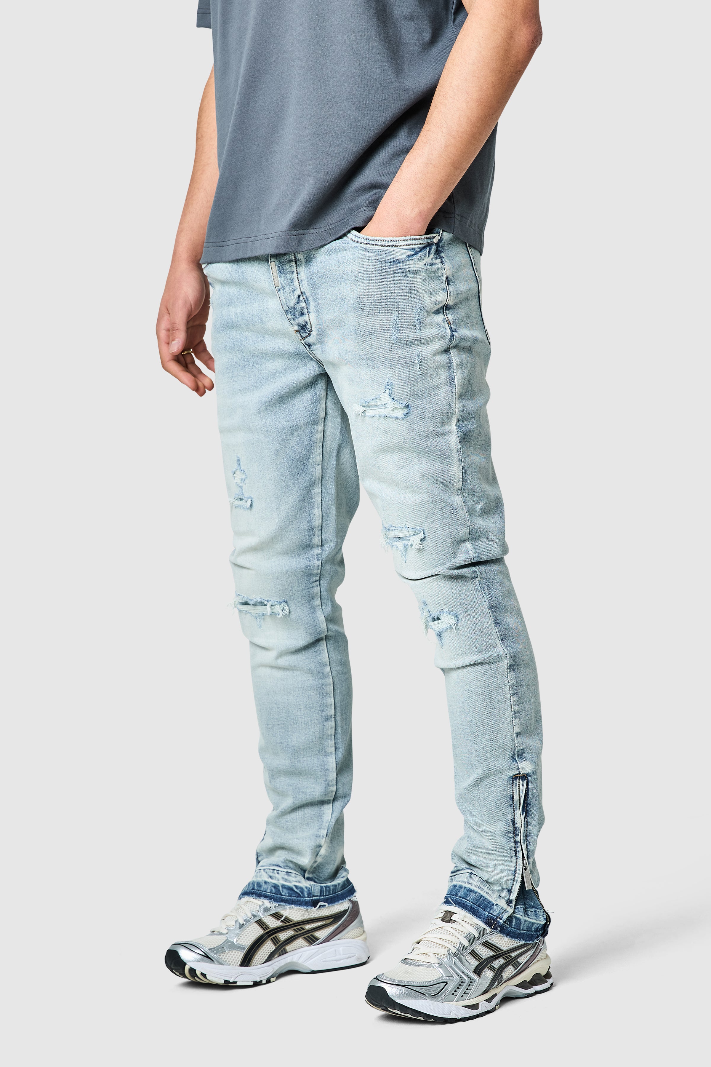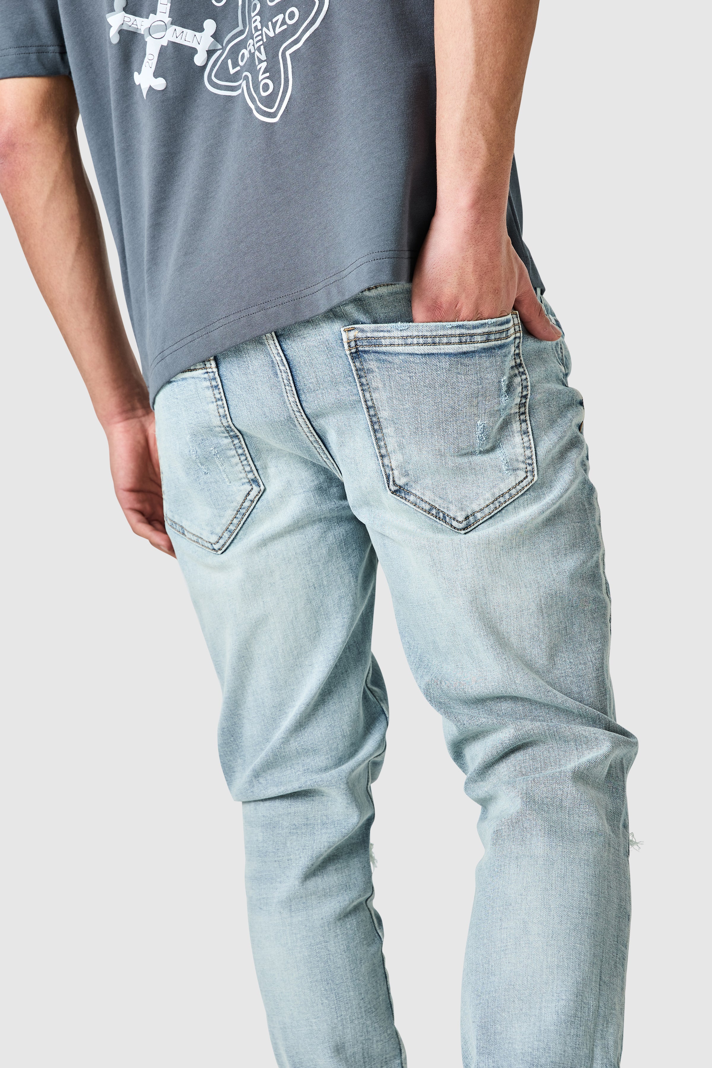 A contemporary slim jean designed for comfort and versatility. The Enzo Jean in Light Blue is crafted from a stretch denim base for ease of movement, offering a streamlined silhouette with natural stacking at the ankle. The light wash adds a more relaxed, everyday feel, while subtle details keep the look clean and modern.