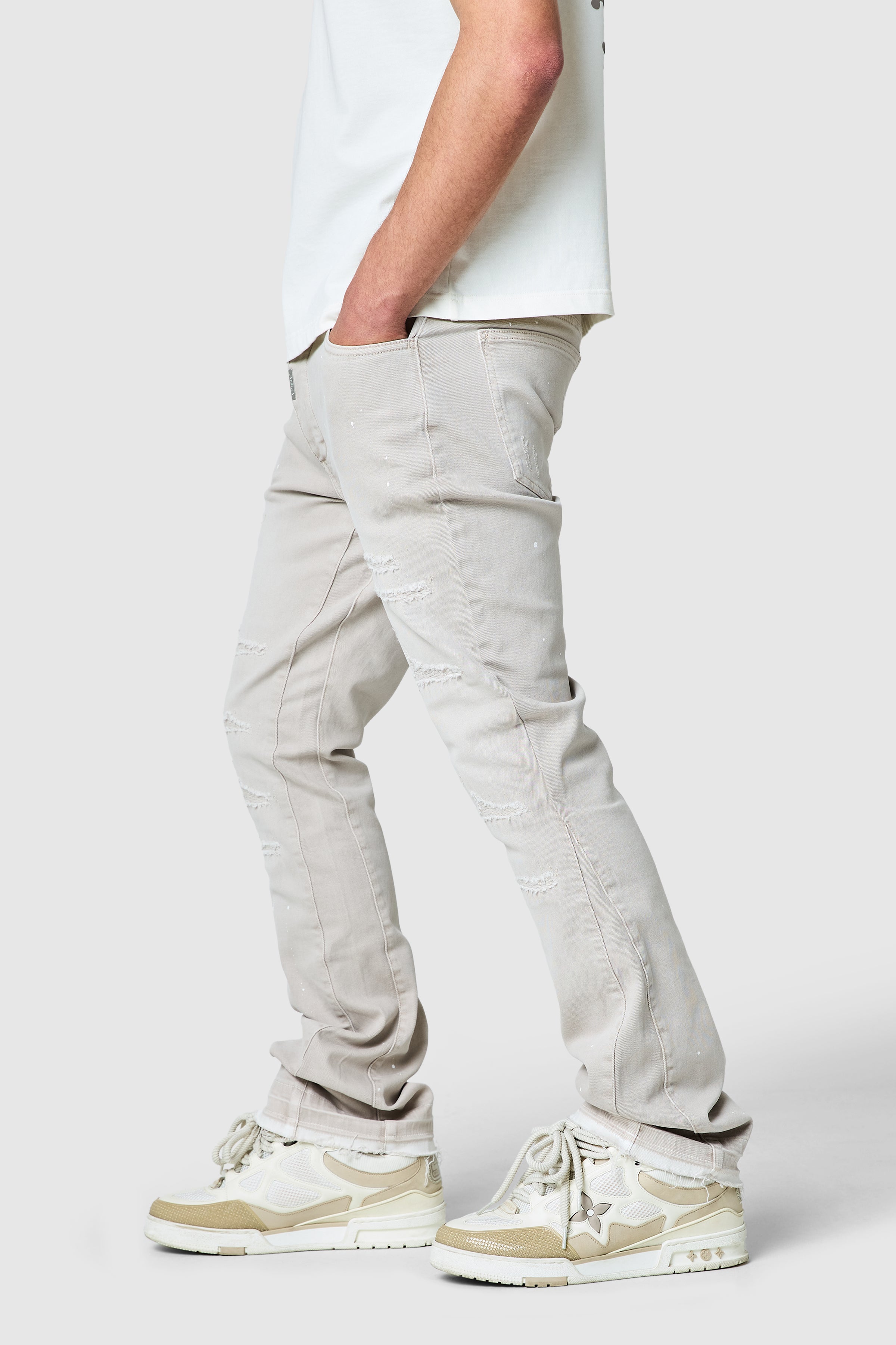 A timeless slim jean designed for effortless style. The Oasis B Jean in Cream Grey is crafted from a soft stretch cotton blend for comfort and ease of movement, offering a clean, streamlined silhouette. Subtle detailing adds character while keeping the look versatile and modern.