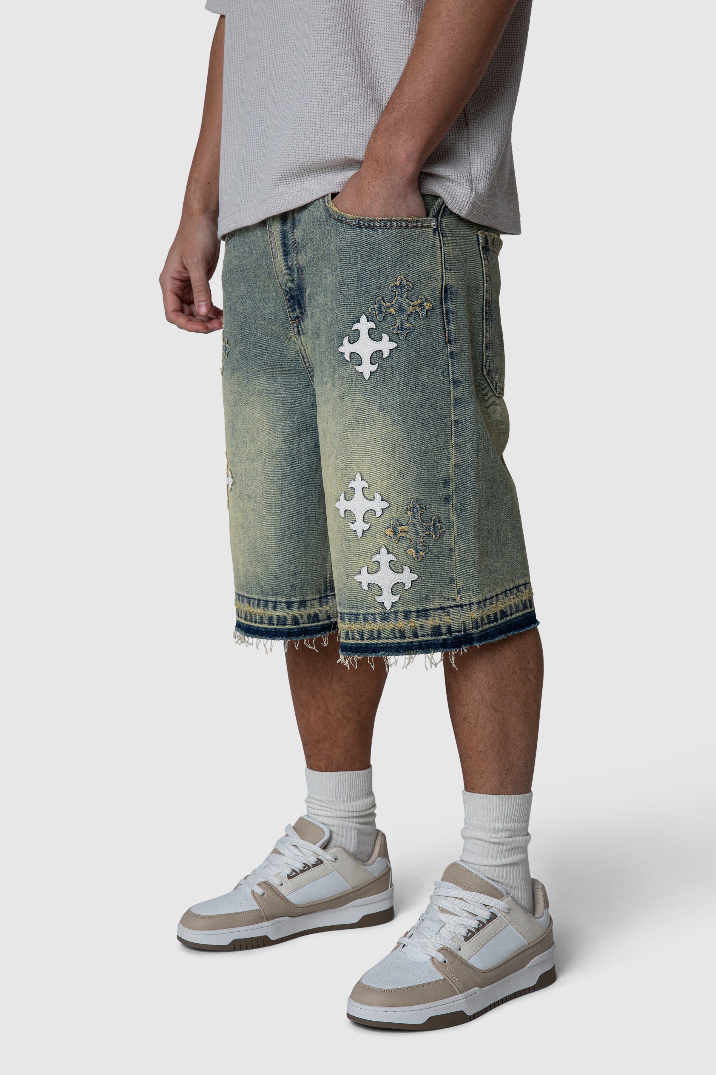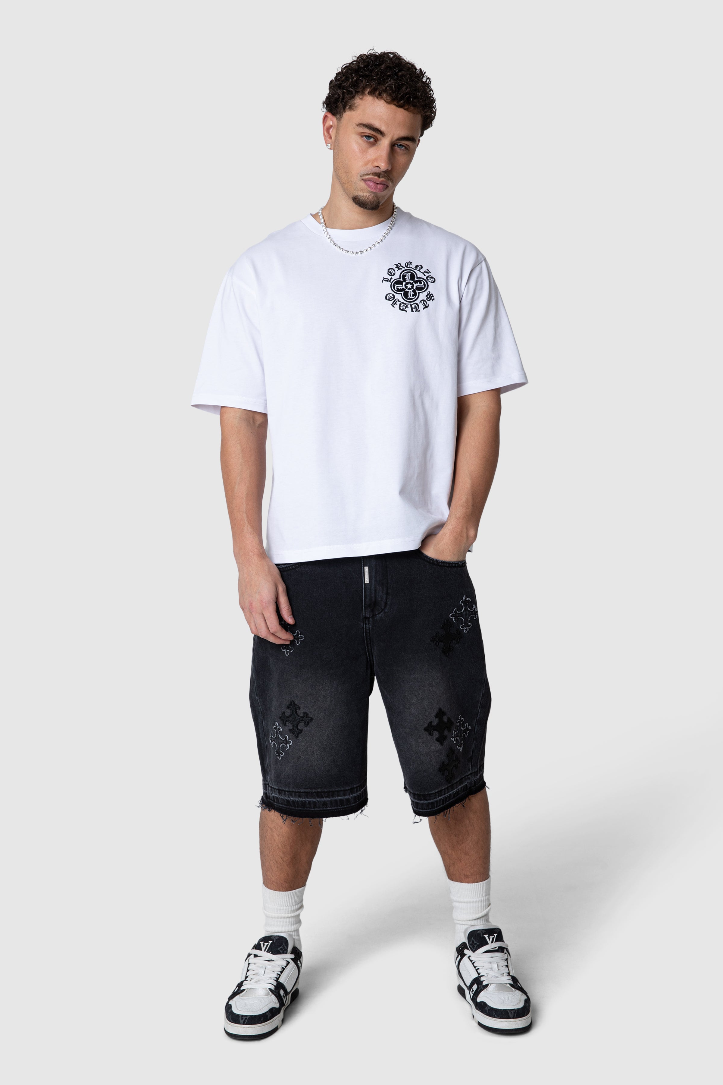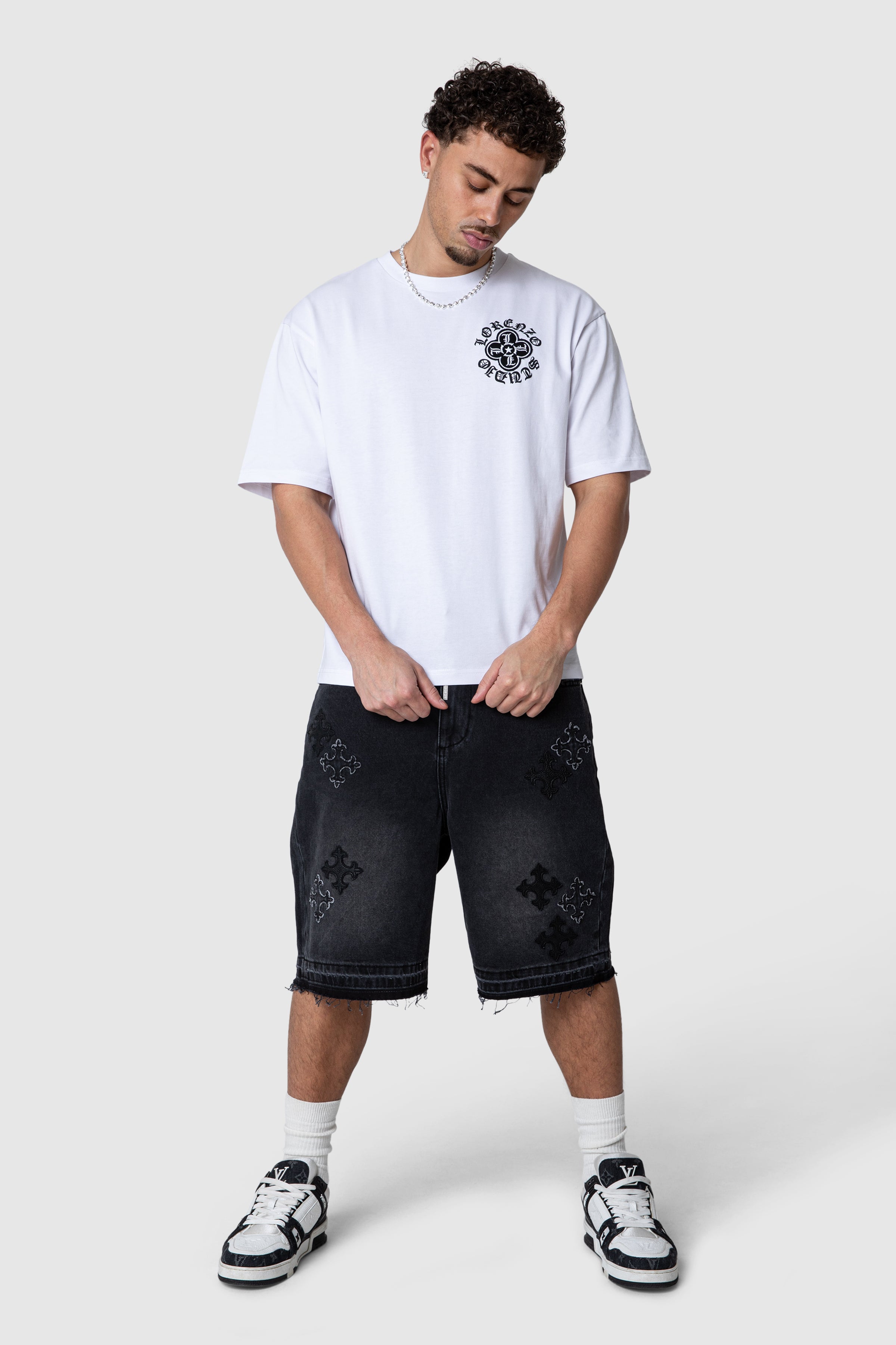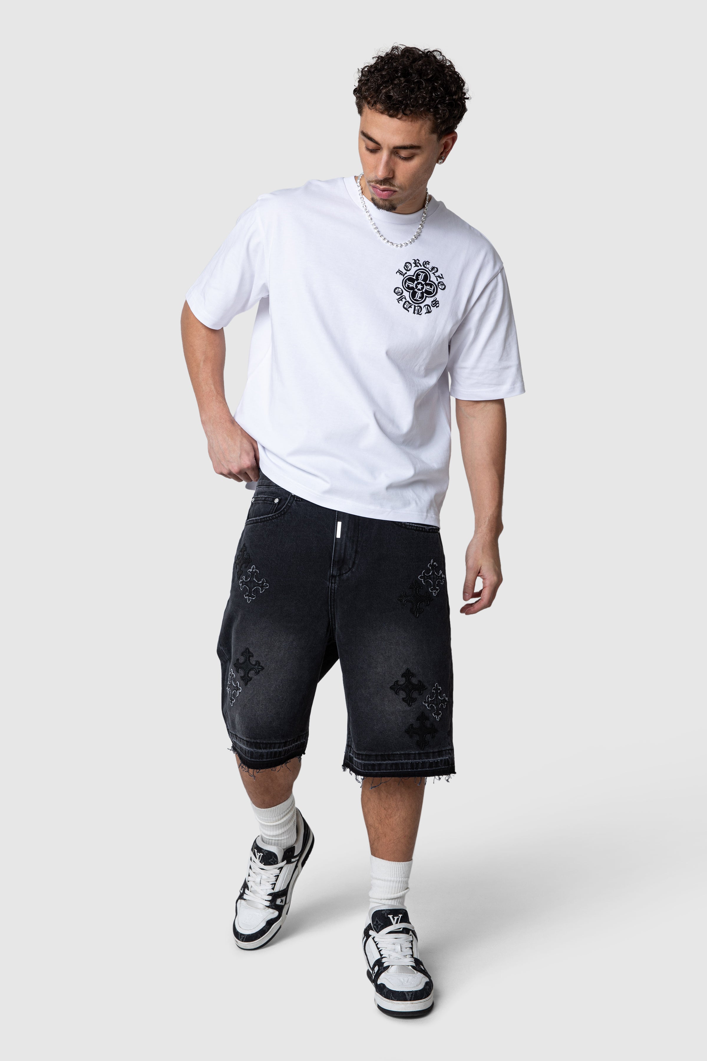 A rigid denim short defined by a clean, classic construction. Finished with cotton poplin pocket bags and brushed silver hardware, it balances everyday wearability with subtle branded detailing. A debossed leather patch adds a premium finishing touch.