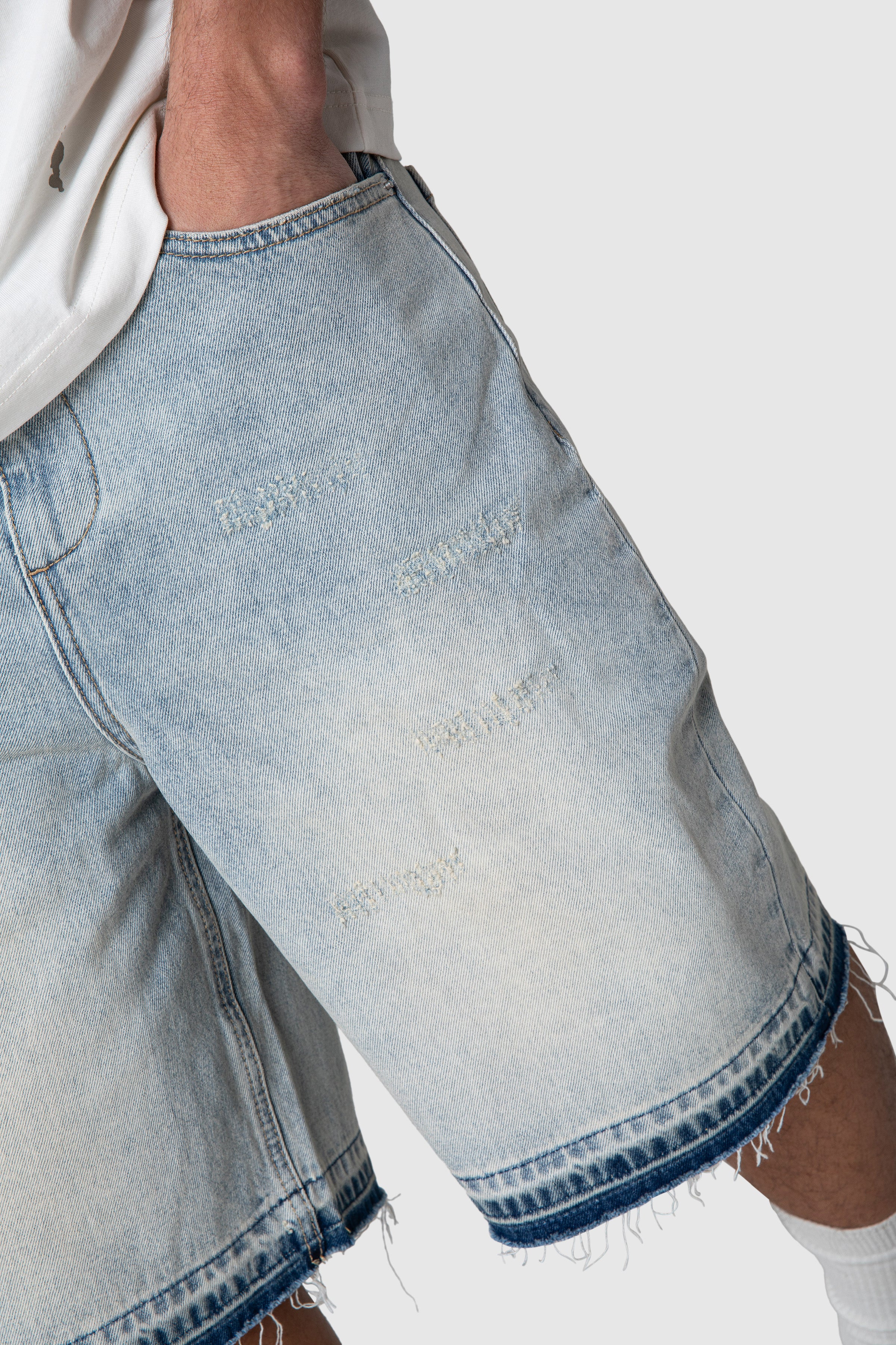 A rigid denim short built for a structured, everyday fit. Designed with cotton poplin pocket bags and brushed silver hardware, it delivers a clean, timeless look with subtle branded detailing throughout.