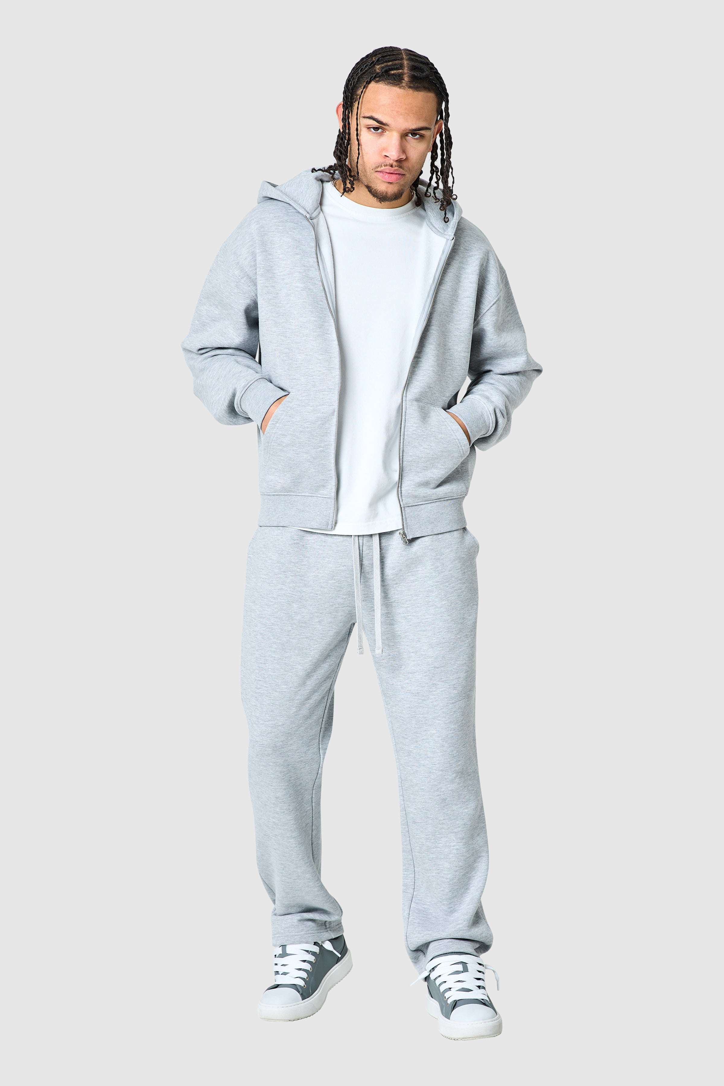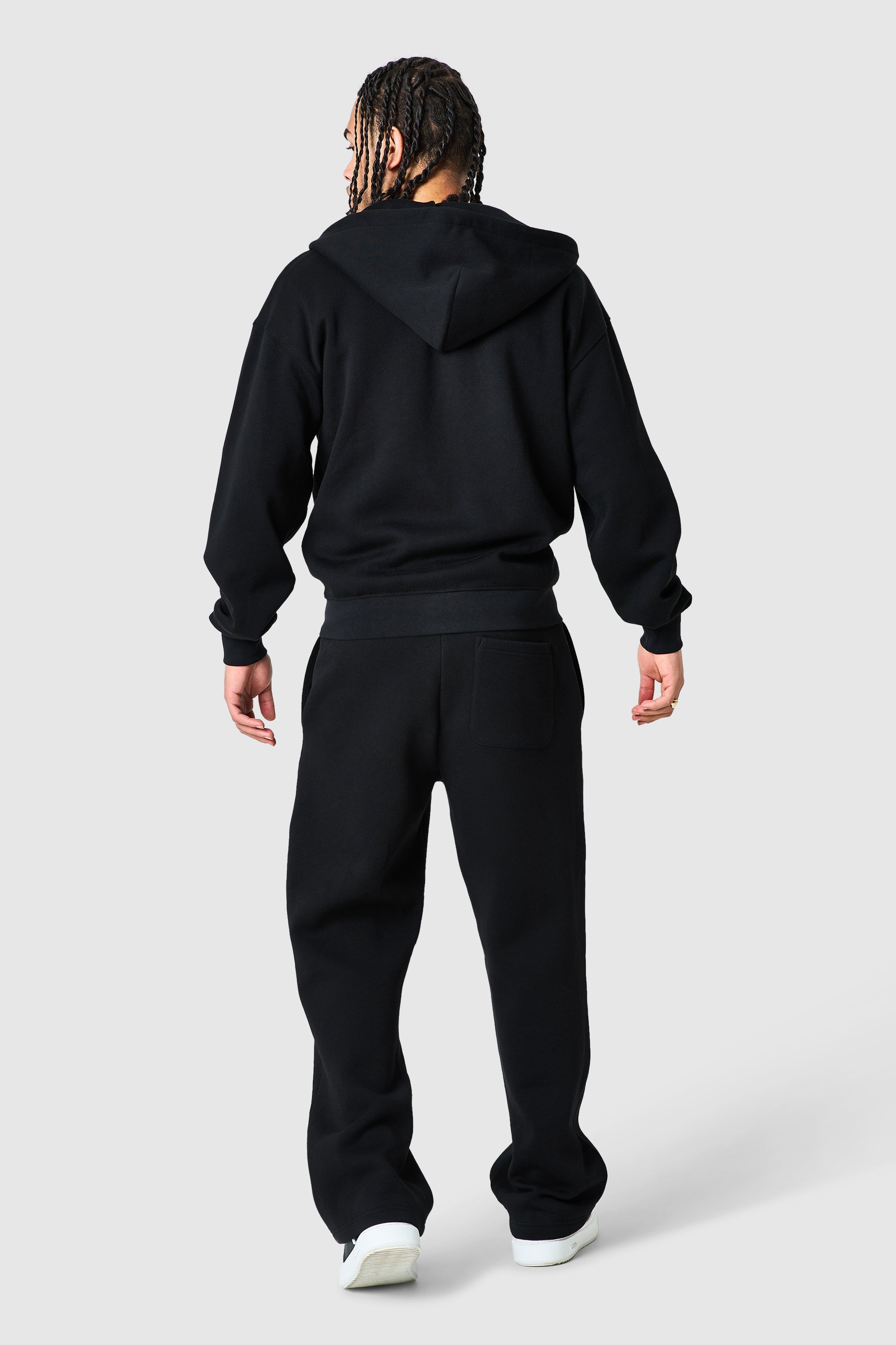 A clean zip hood and jogger set designed for everyday comfort and ease. Crafted from a soft brushback cotton blend, it offers a structured feel with a cosy interior. Ribbed cuffs on the sleeves and a wide leg fit offer both comfort and style, while minimal detailing keeps the look simple and versatile.