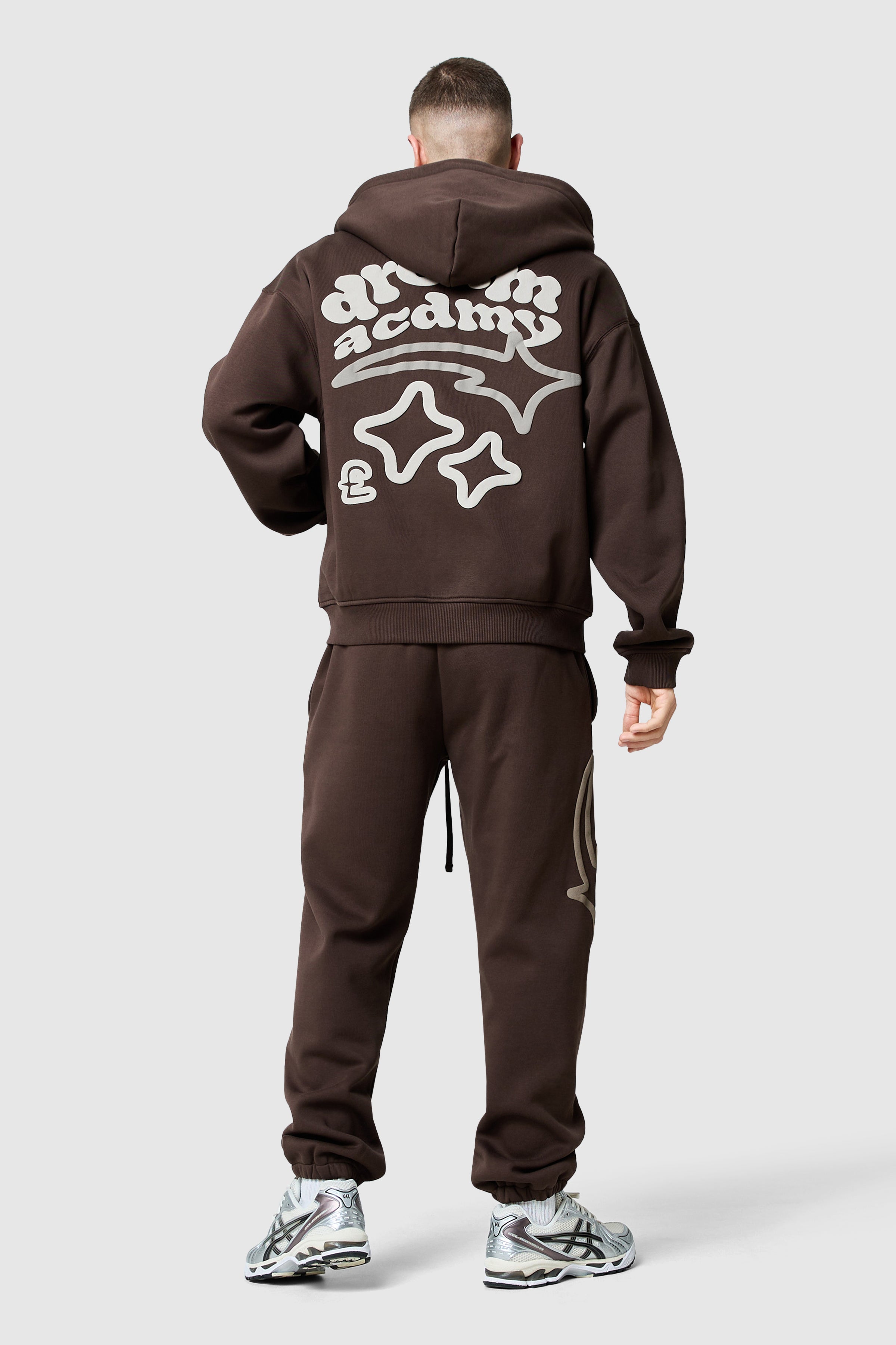 A modern zip-through tracksuit designed for comfort and bold graphic detailing. Crafted from soft brushback sweat, it pairs the Dream Acdmy Zip Hood with matching joggers for a contemporary streetwear look.