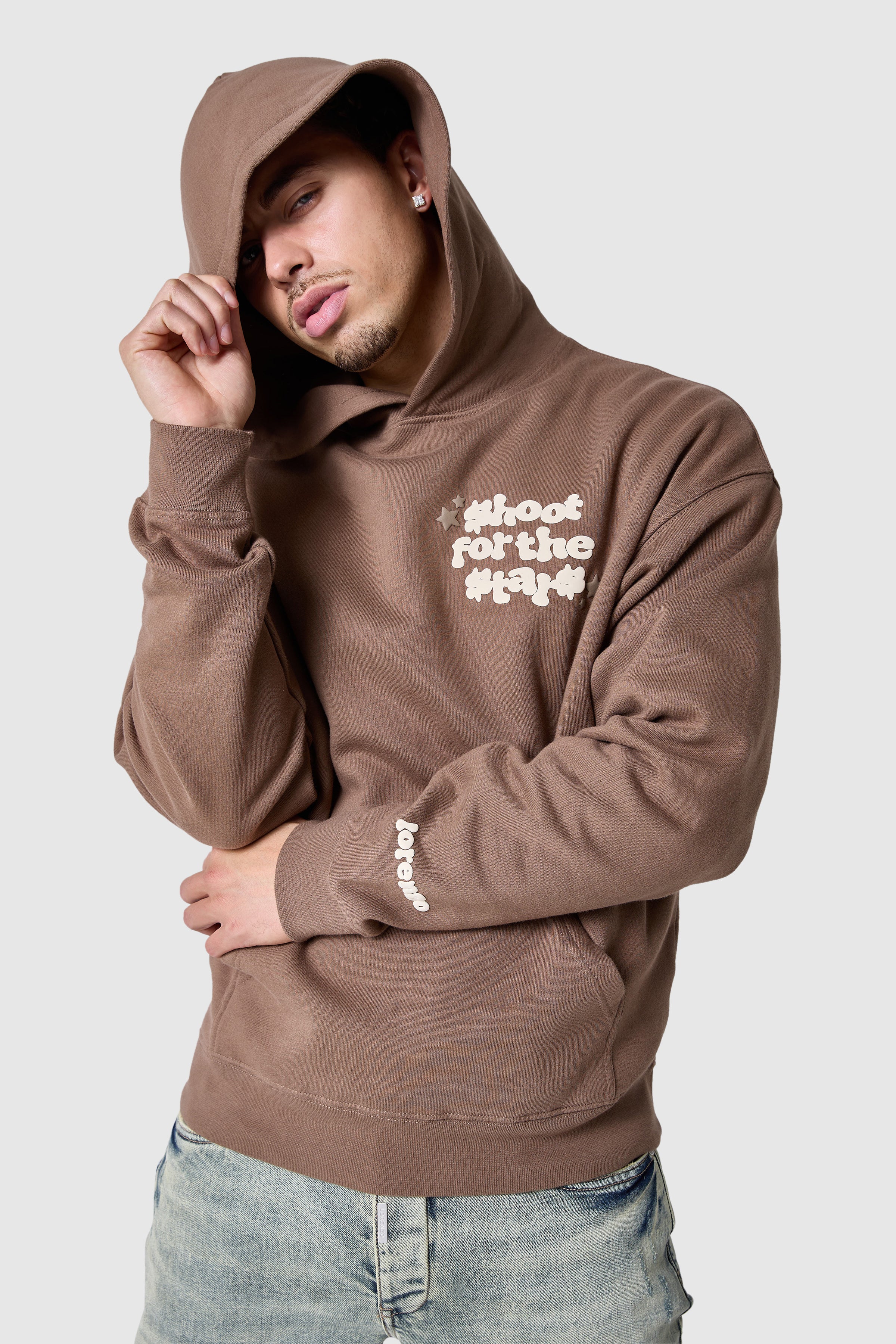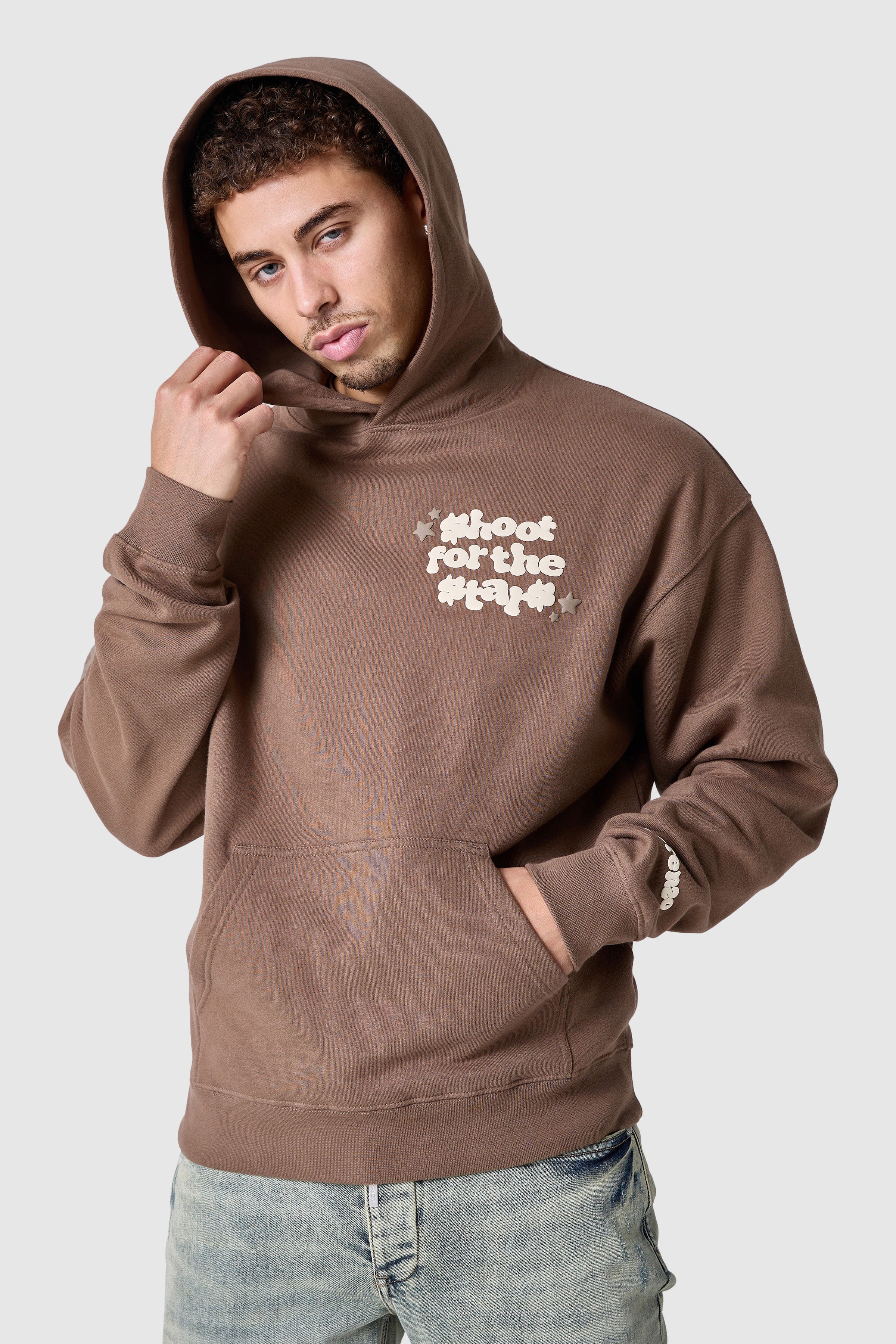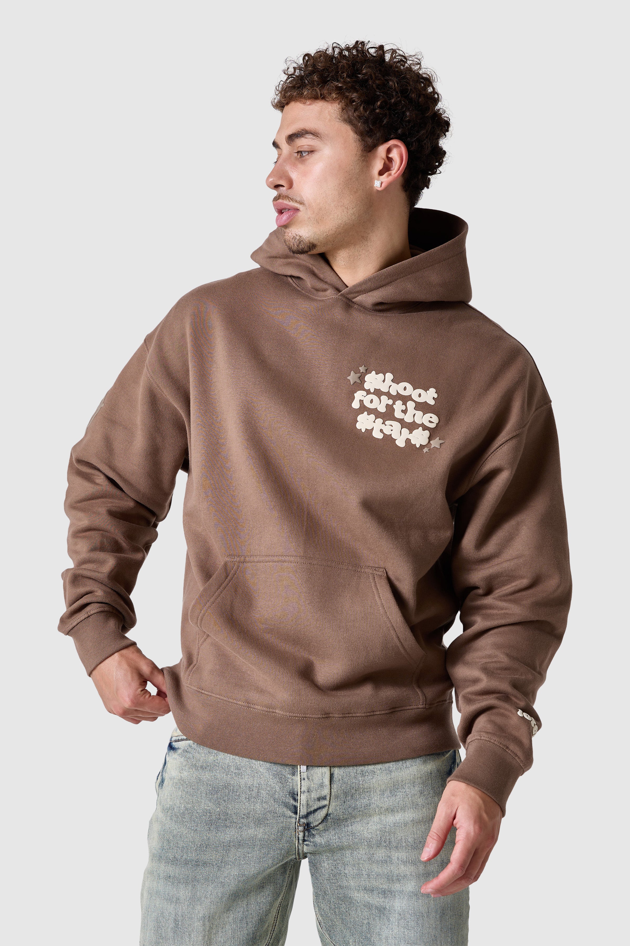Introducing the Shoot For The Stars Hood. Featuring a bold graphic puff print and ribbed cuffs and hem, it pairs perfectly with the matching fleece jogger for a complete look.