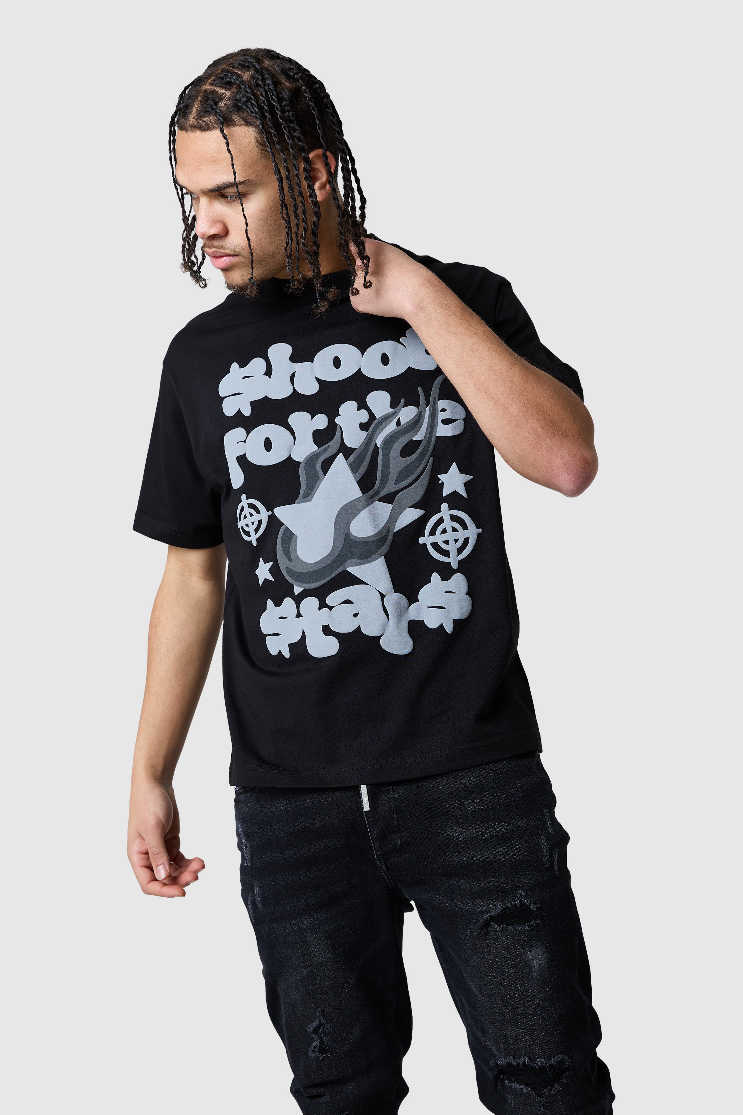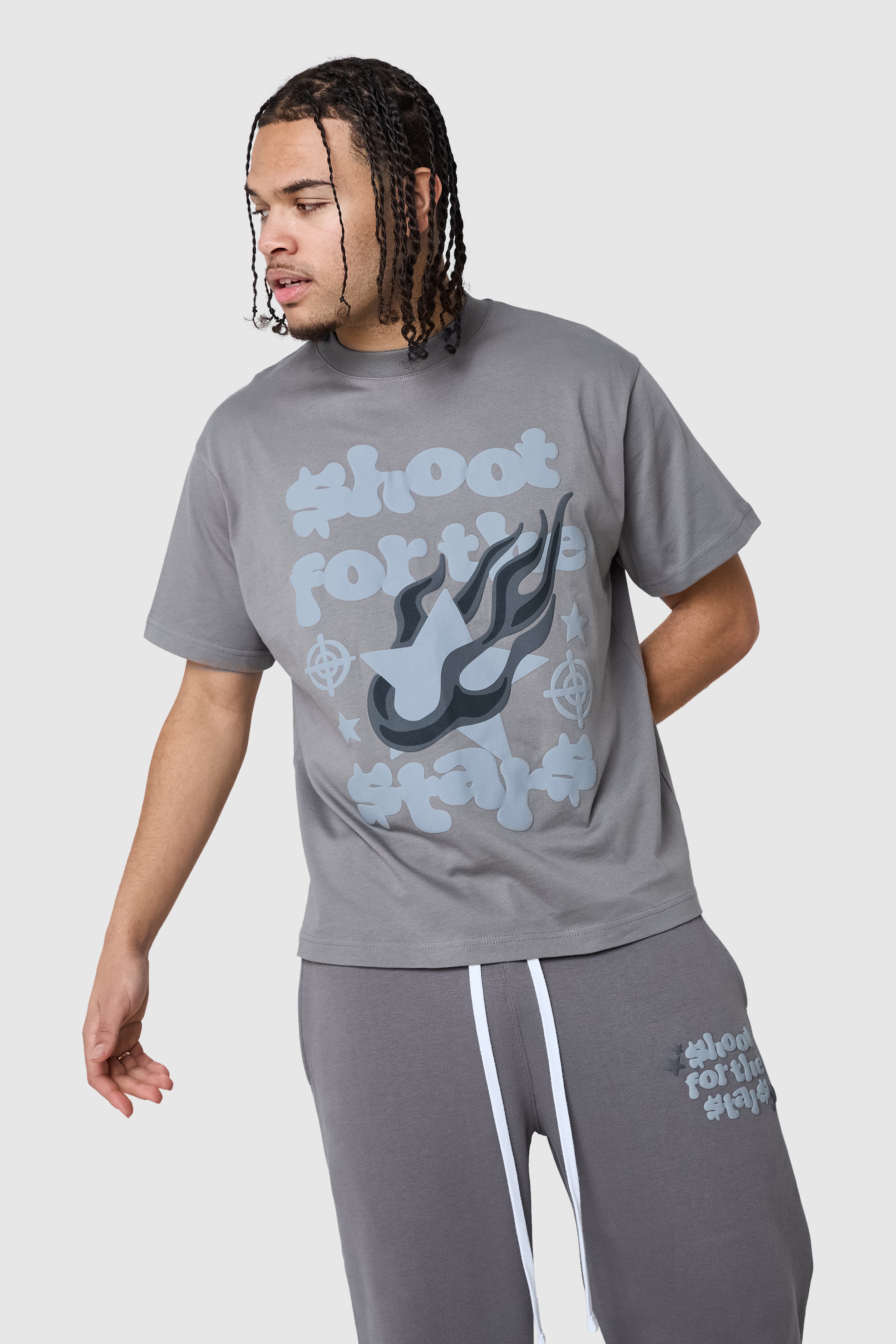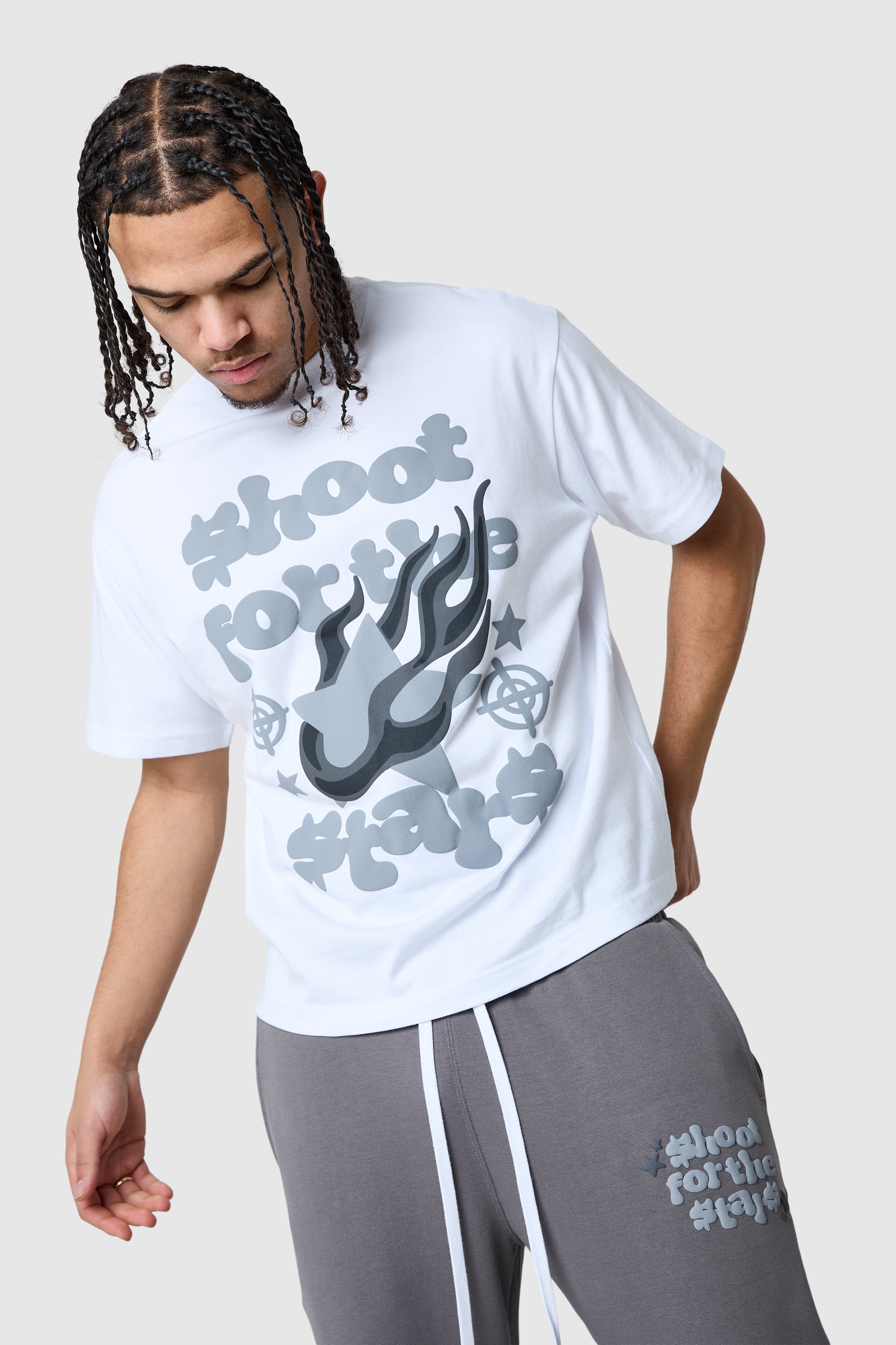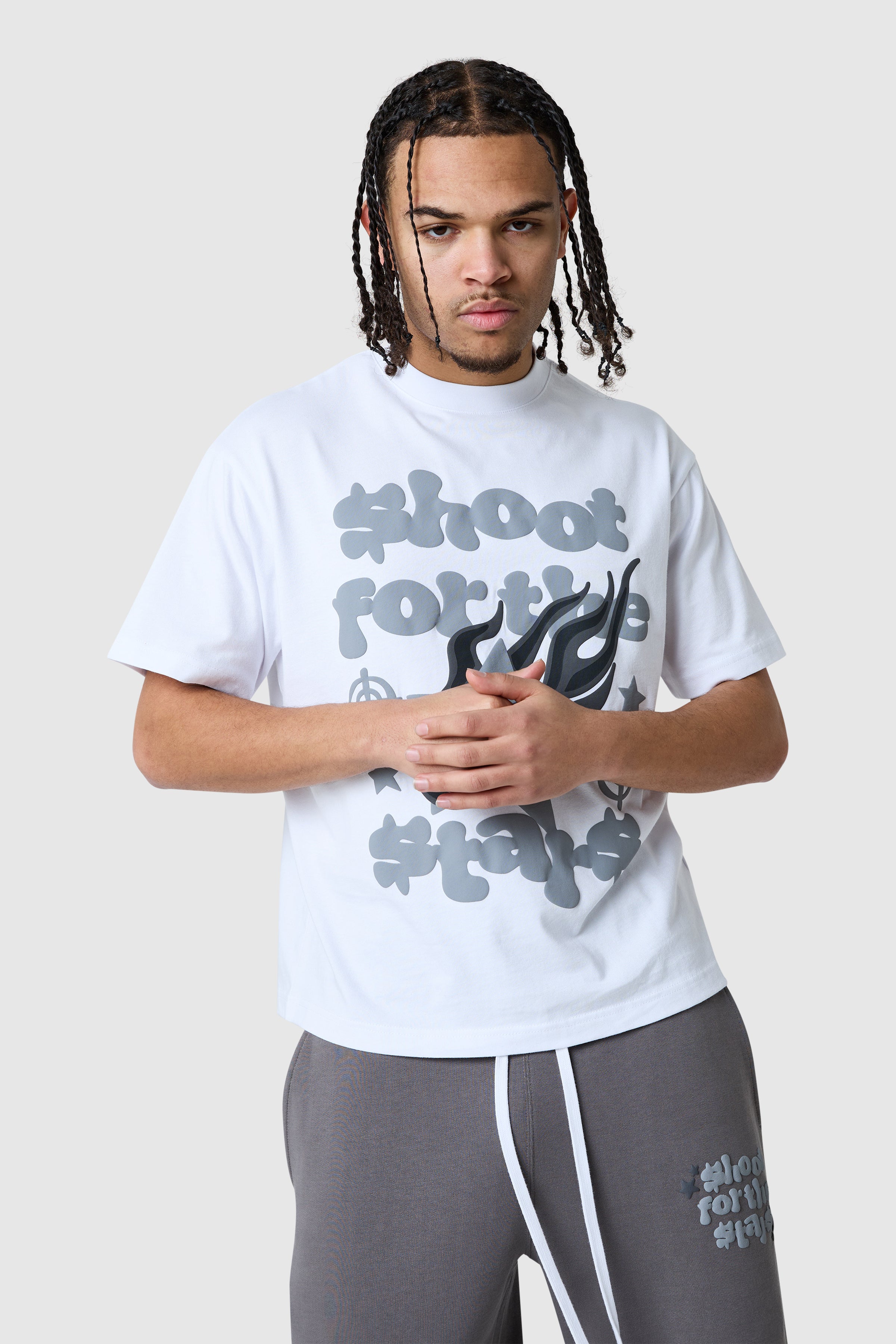 A relaxed, graphic tee designed for everyday style. The Target Tee in White is crafted from 100% cotton jersey for a soft, structured feel, featuring a drop shoulder silhouette and a bold puff print graphic on the front for a statement finish.