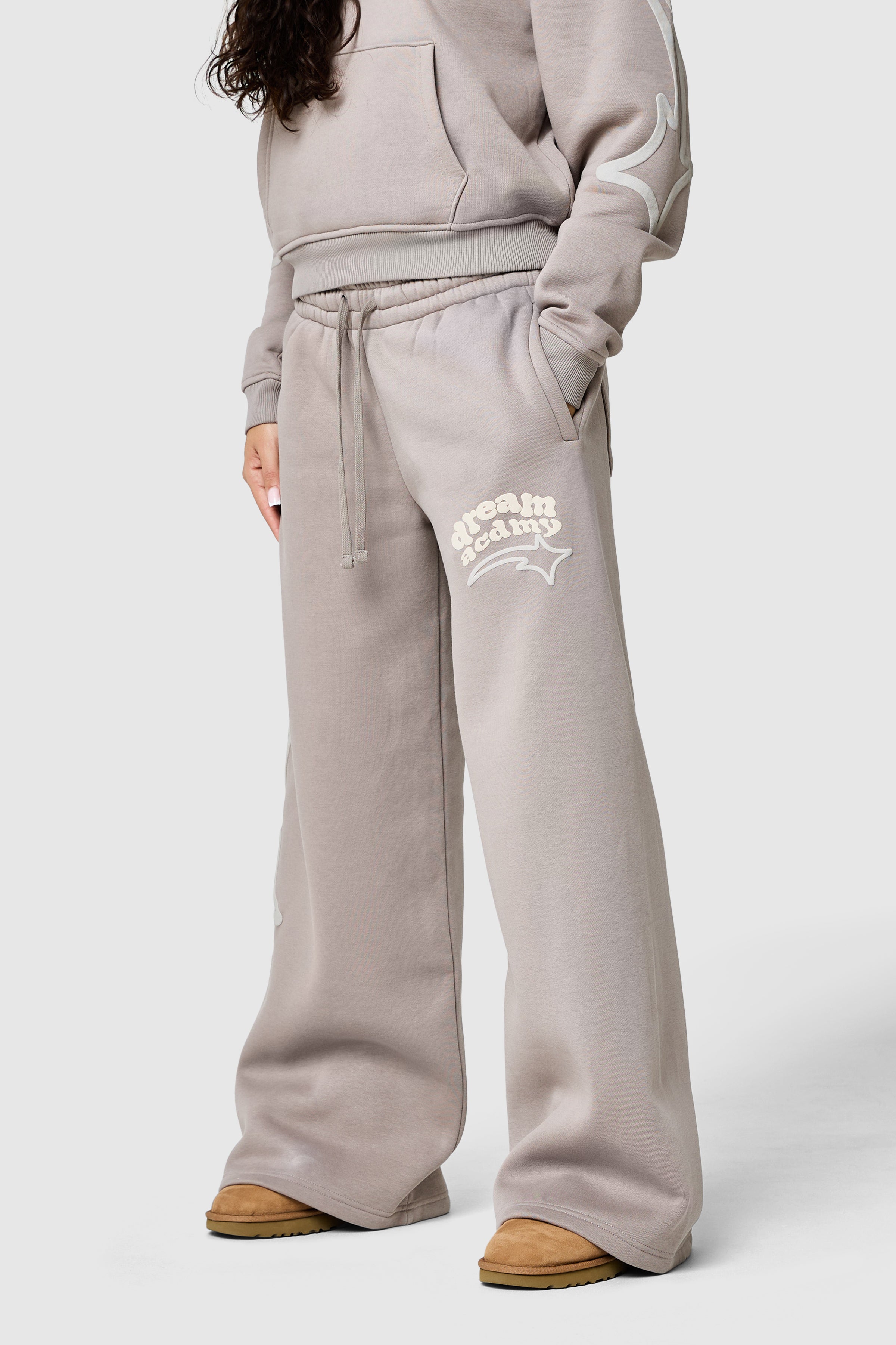 A relaxed jogger designed for comfort with bold, graphic details. The Soft Taupe Women’s Dream Acdmy Jogger is crafted from a soft 80% cotton, sweat (320 GSM), featuring a elasticated waistband with tonal drawcords for a clean finish. Puff print graphics on the front and side leg add a statement touch.