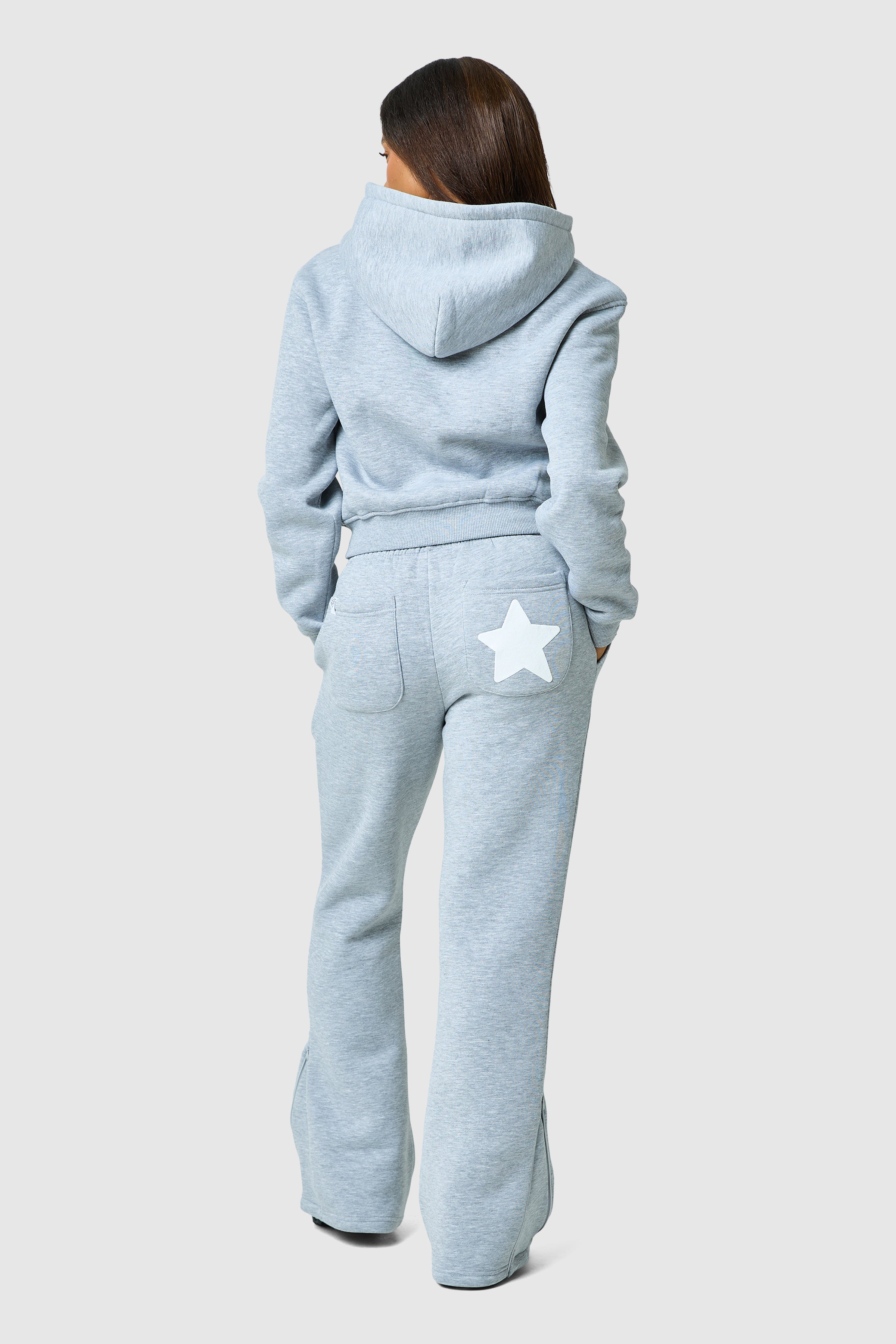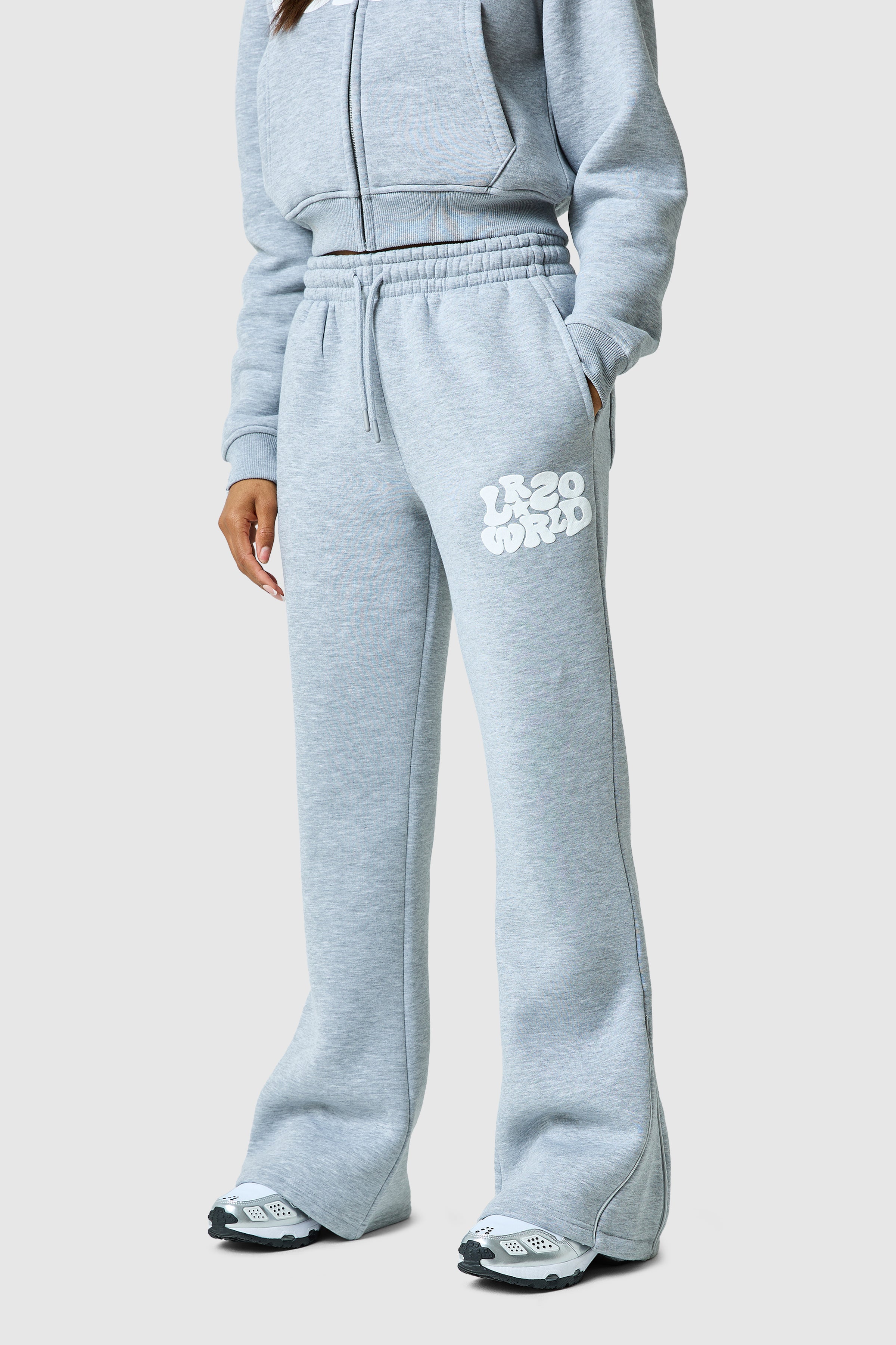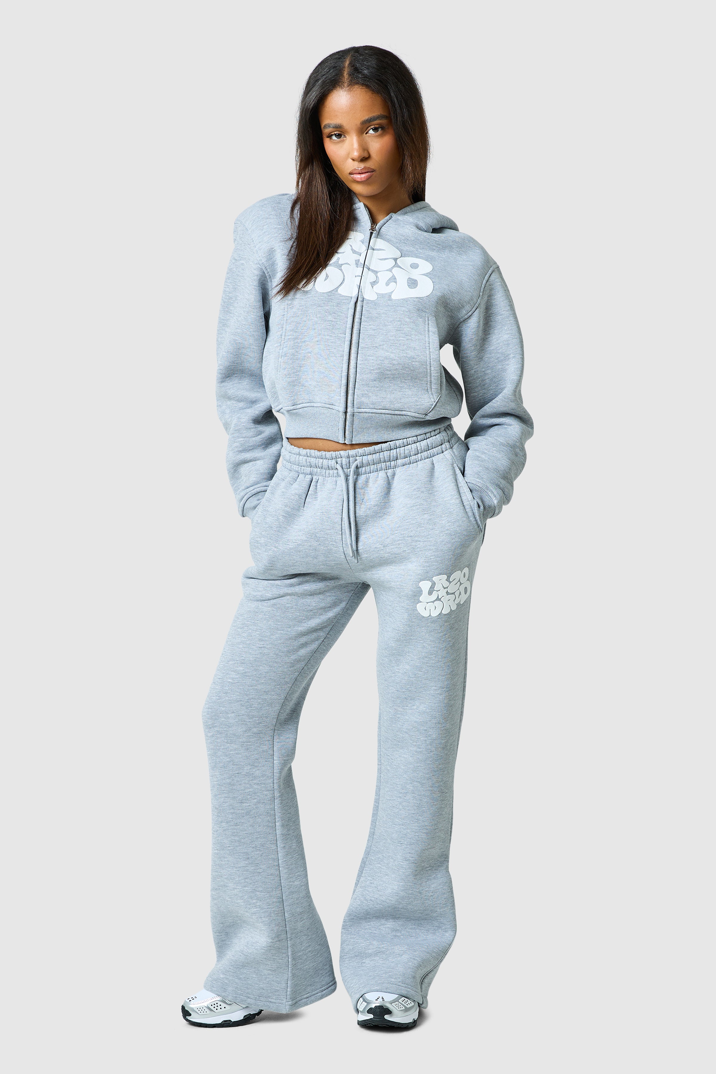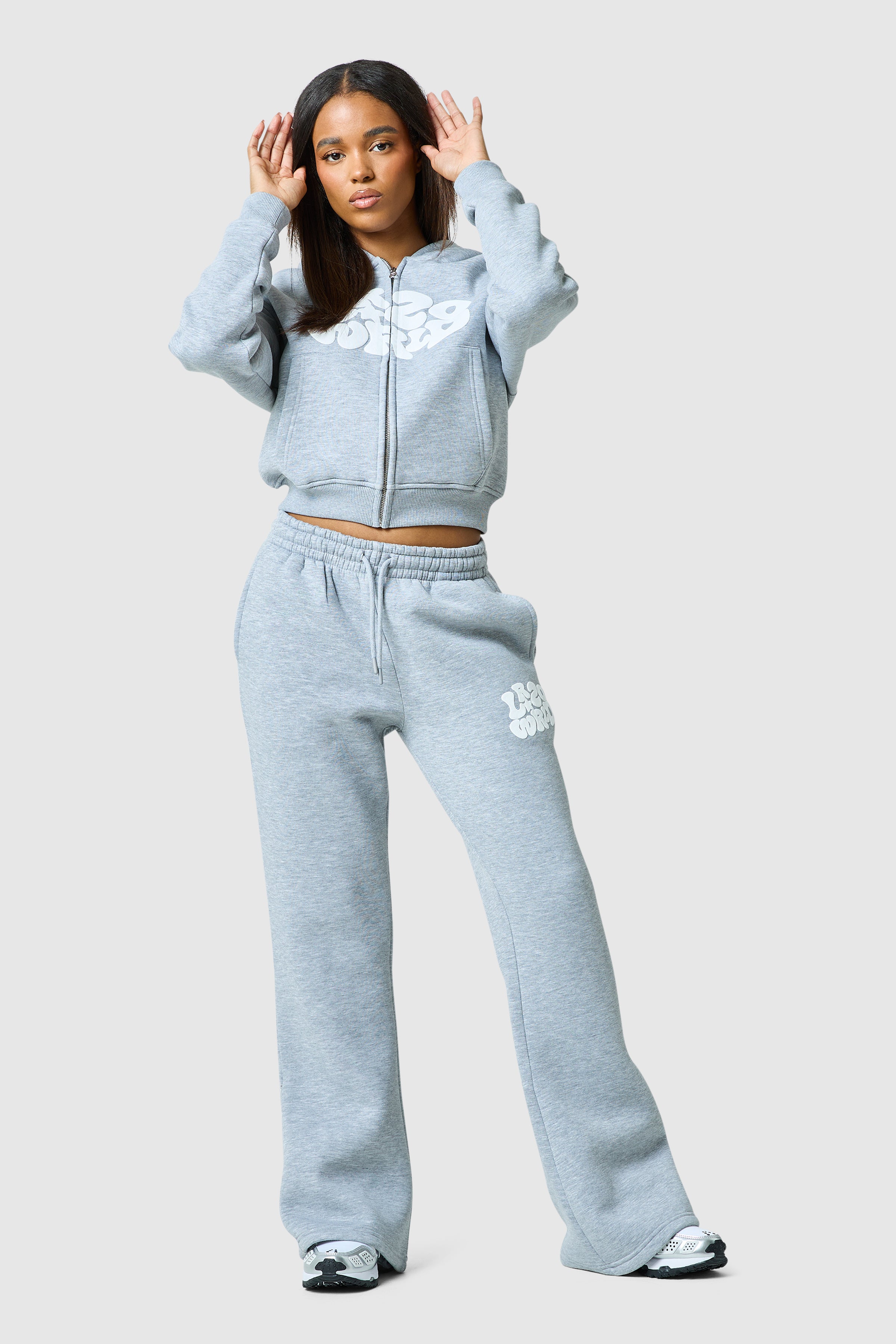 Introducing the Luna Tracksuit. Featuring a bold graphic puff print and ribbed cuffs and hem hood and a wide leg jogger, Luna is a new staple.